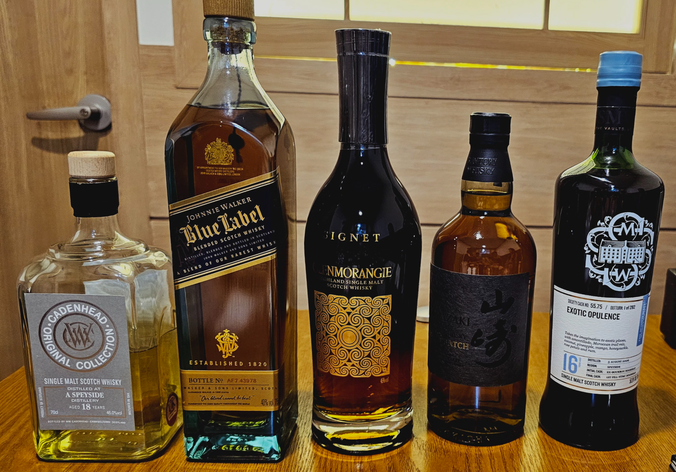 위스키 라인업. 양옆에는 구하긴 쉽지만 대중적으로 엄청난 인기를 구가하는 위스키들, 가운데는 비교적 구하기 어렵거나 희소한 위스키들이다.