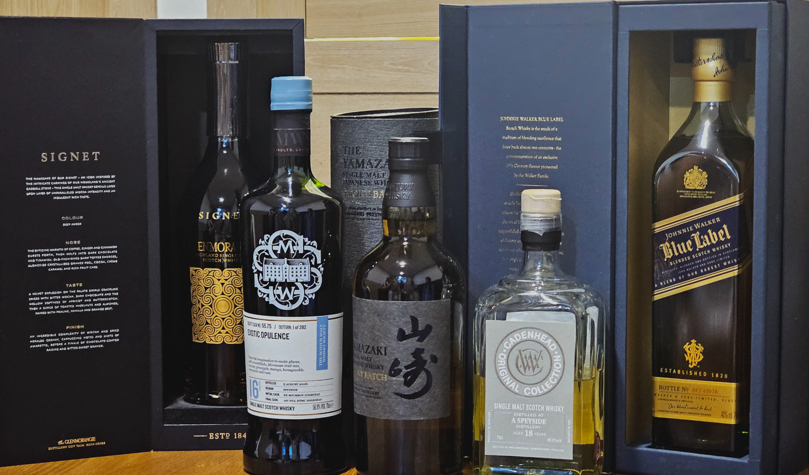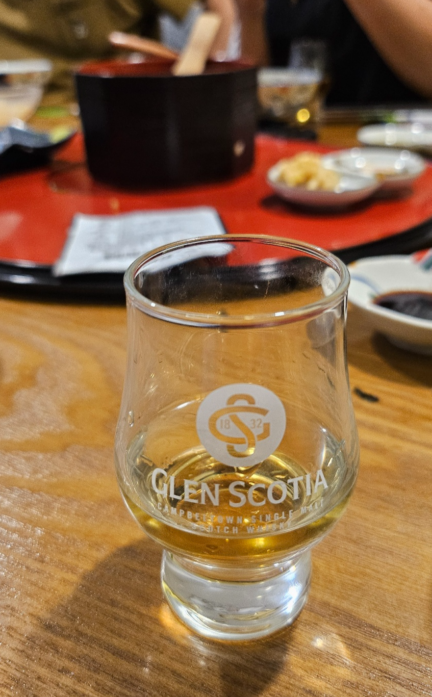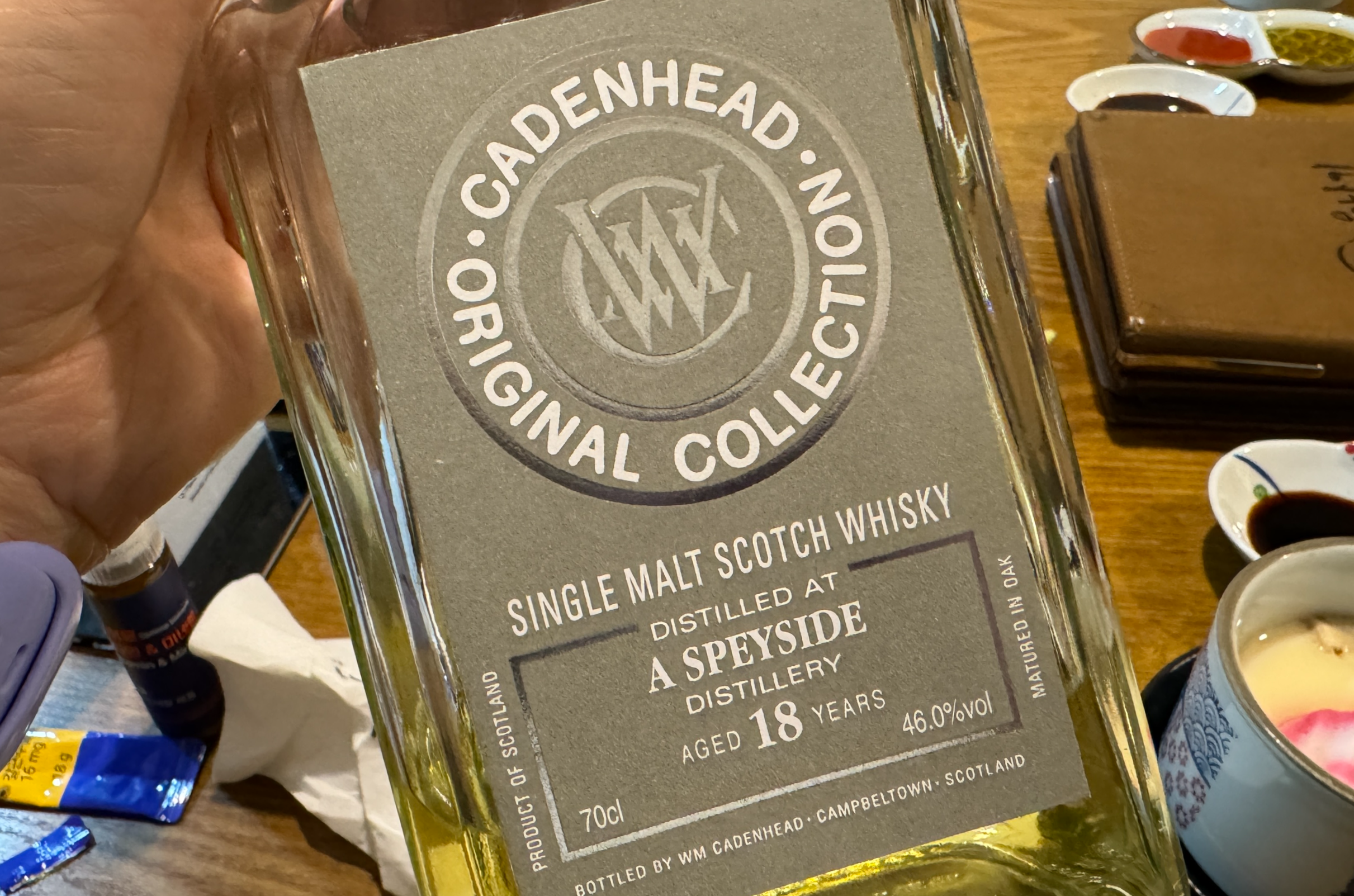 첫 위스키는 Cadenhead's Original Collection, A Speyside Distillery aged 18 years. 옅은 골드 컬러에서 노란 과일과 노란 꽃술 같은 플로럴 뉘앙스, 그리고 정향 허브와 연기 미네랄. 가볍고 산뜻한 미감에 토스티 오크까지 균형 잡힌 스페이사이드 싱글 몰트의 전형을 보여준다.