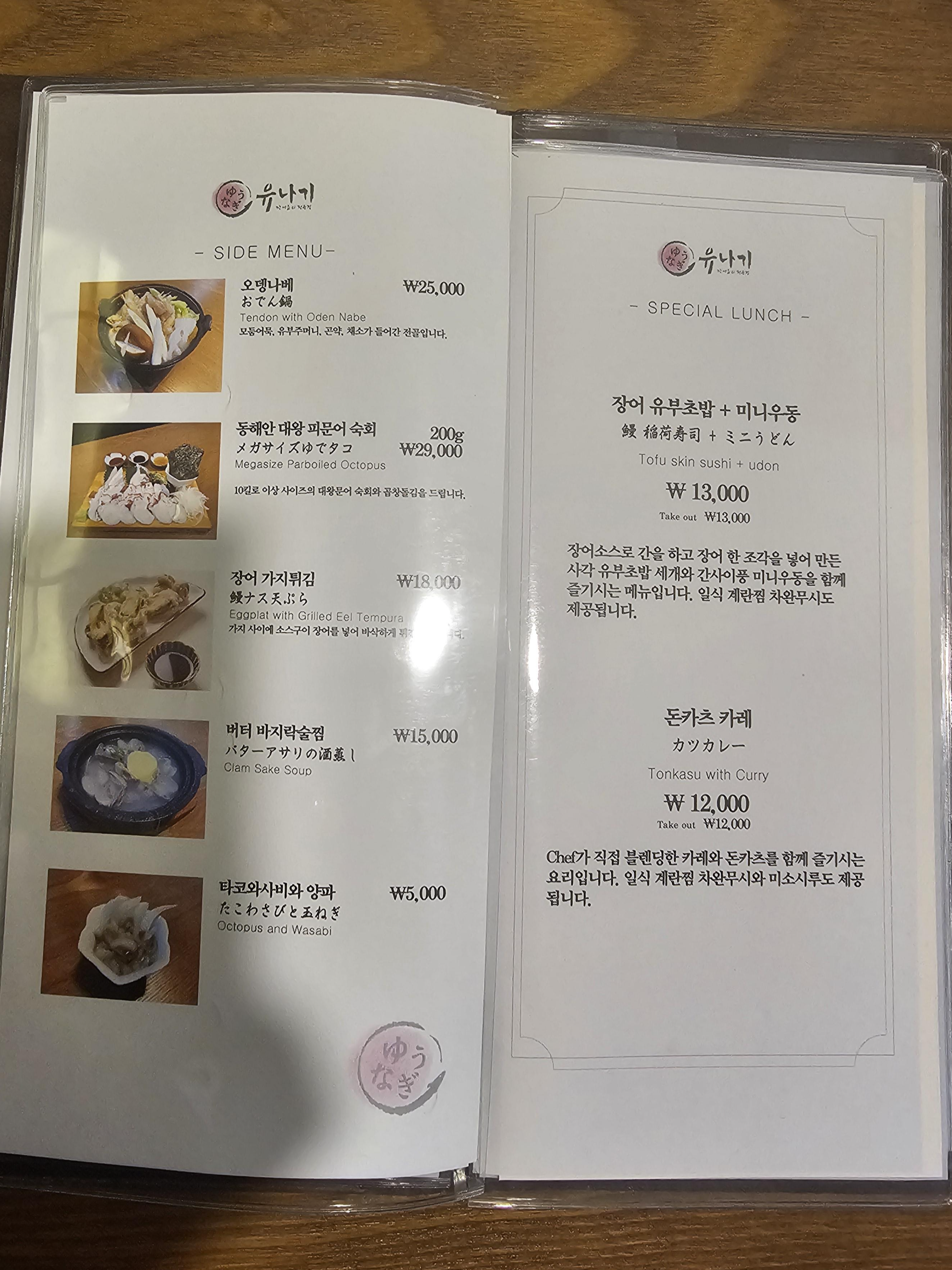 논현동 장어집 유나기. 독특하게 위스키 콜키지는 병 당 5천 원인데, 사케/와인은 2만 원이다. 대표님이 위스키를 좋아해서 그렇단다. 매장에서 파는 위스키 라인업도 제법 괜찮은 편이라고. 주말엔 아예 콜키지 프리라 더욱 좋다.