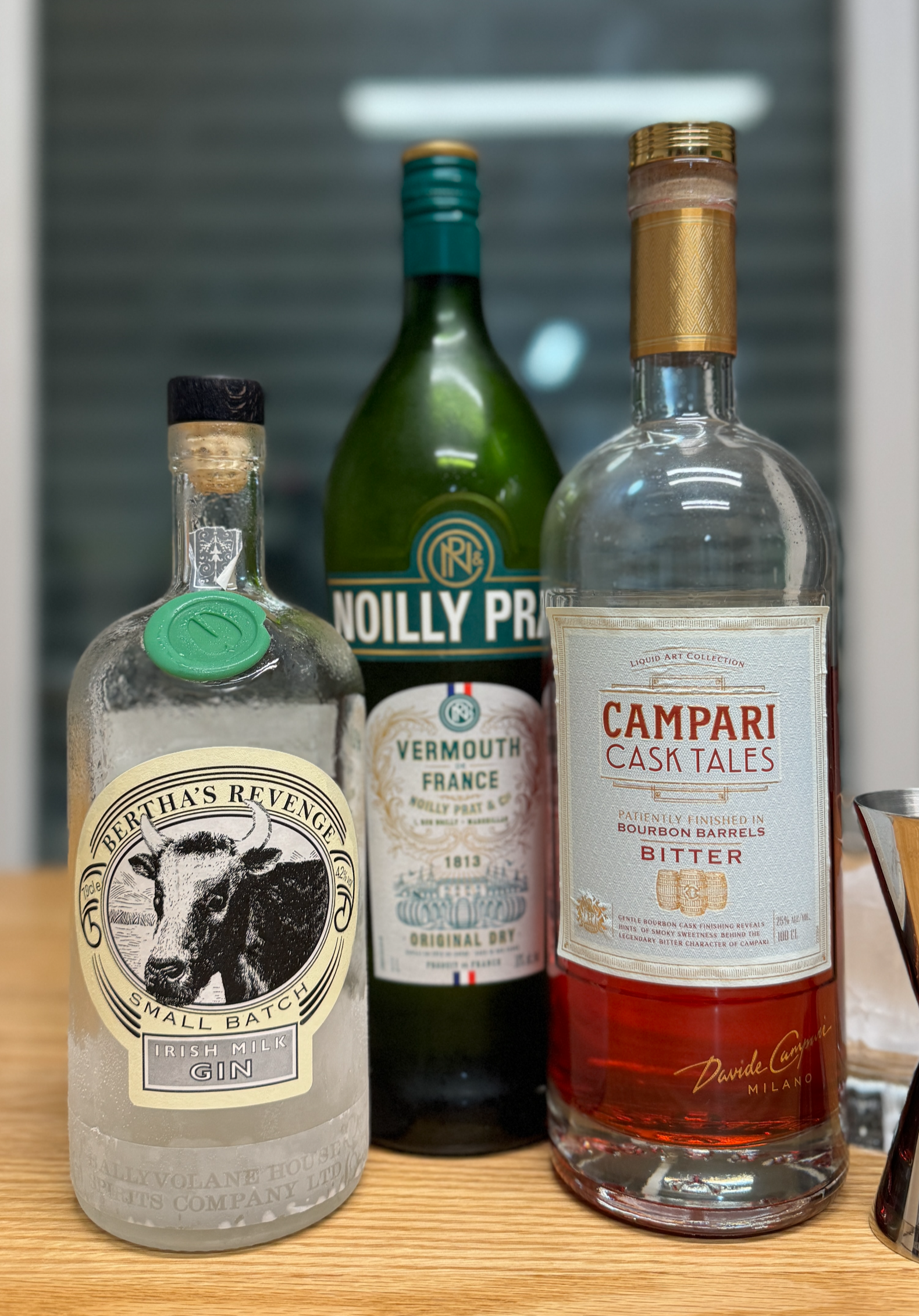 어쨌거나 기사를 본 김에 만들어 보았다. 바닥을 보이고 있는 베리타스 리벤지 진과 노일리 프랏 드라이 베르무트, 그리고 캄파리 캐스크 테일즈를 사용했다.