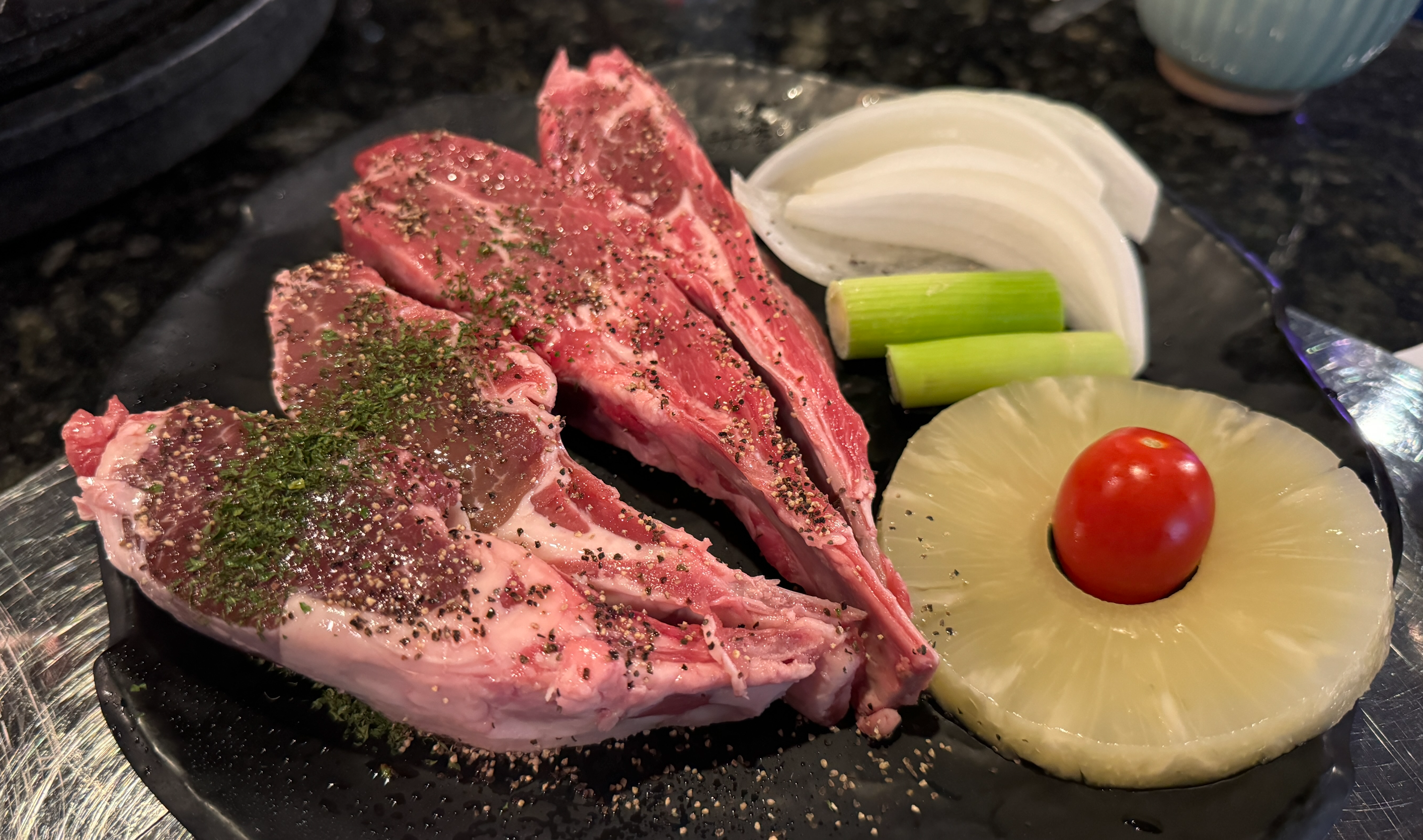 오랜만에 만나는 친구와 함께 양파이 한남점. 양고기를 먹기 좋게 구워 주는 데다 콜키지도 프리기 때문에 종종 애용하는 곳이다.
