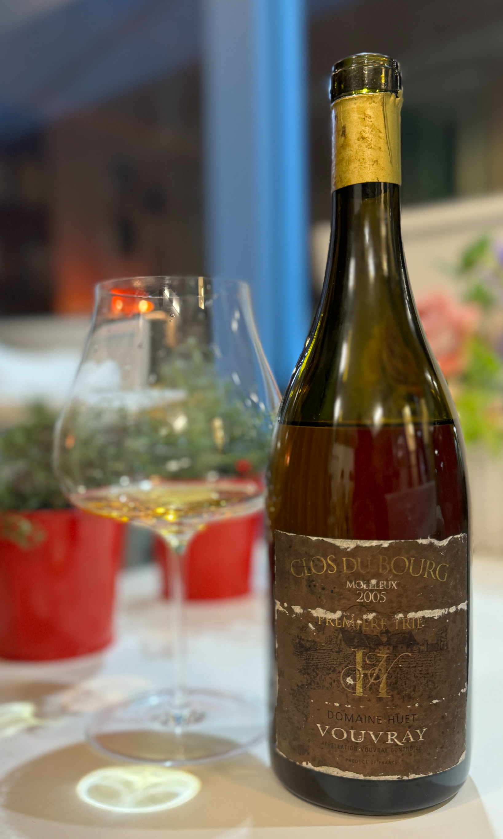 이제 마지막인가 싶었는데 추가로 나온 한 잔. Domaine Huet, Vouvray 'Clos du Bourg' Moelleux Premiere Trie 2005. 딱 적당한 상황에 잘 숙성된 스위트 와인이 등장했다.