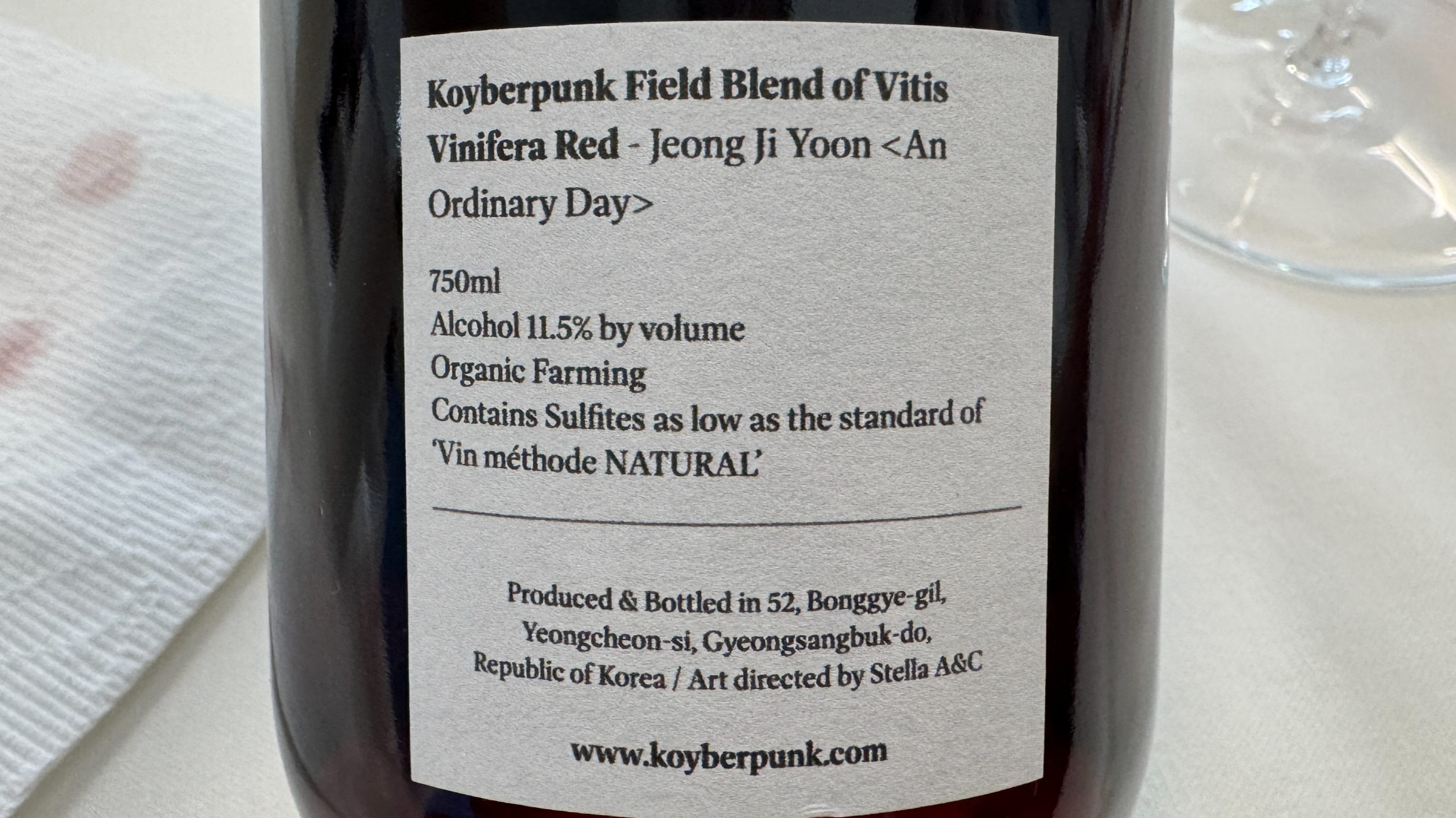 그리고 갑자기 등장한 특별한 와인, Koyberpunk Field Blend of Vitis Vinifera Red 2021. 홍콩에서 와인 에이전트로 활동 중인 고성찬 대표가 영천에서 재배한 포도로 만드는 와인이다.