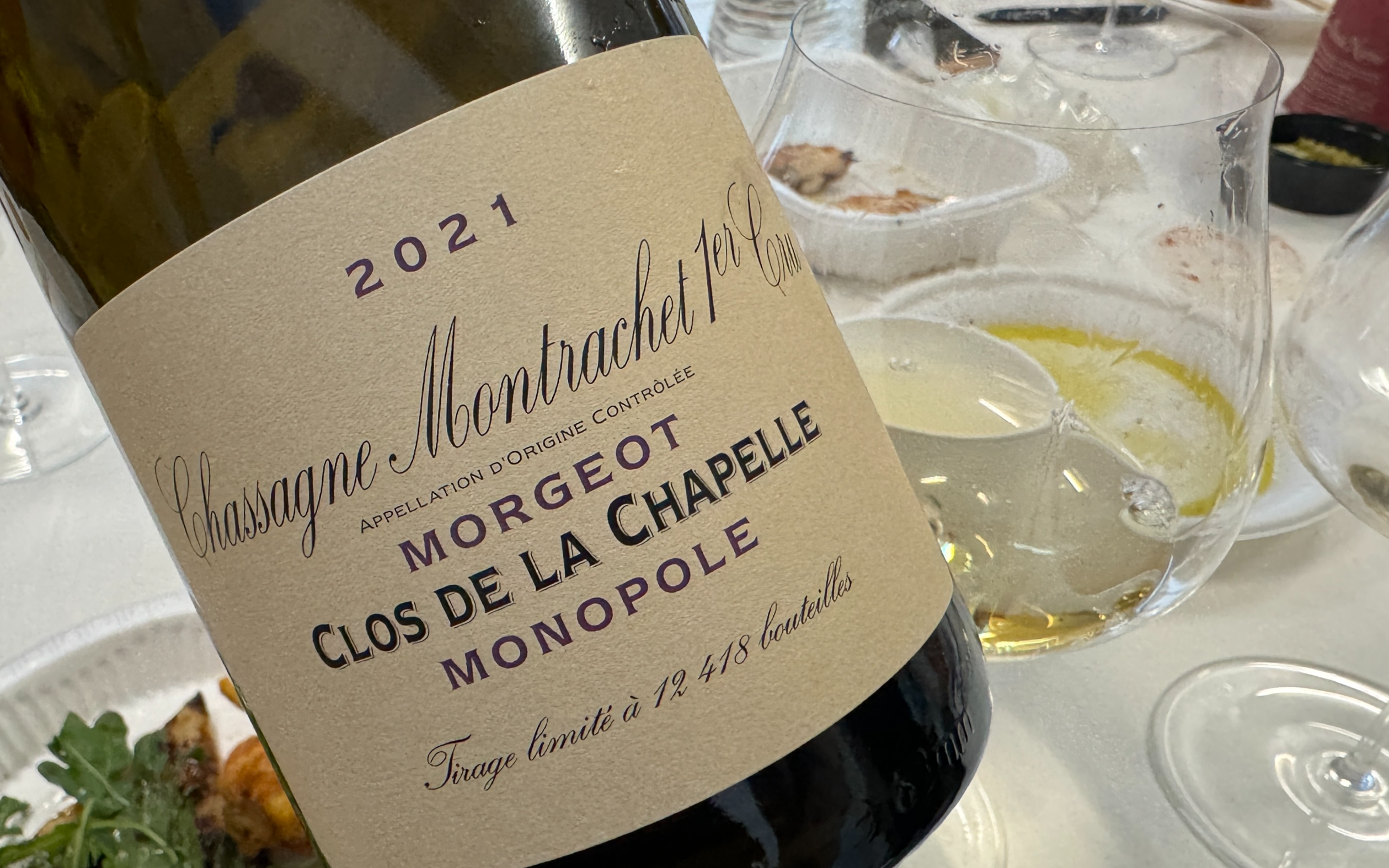 다시 돌아온 화이트 타임. Domaine de la Vougeraie, Chassagne Montrachet 1er Cru 'Morgeot Clos de la Chapelle (Monopole)' 2021. 달달한 오크와 망고, 말린 파인애플 같이 진한 열대 과일 풍미가 강렬하게 드러난다. 입에 넣으면 구조가 너무 강건하고 풍미가 생생해서 쨍한 느낌이 들 정도인데, 시간이 지날수록 누그러들긴 했지만 너무 어려서... 조금은 아깝다는 생각이 들 정도였다.