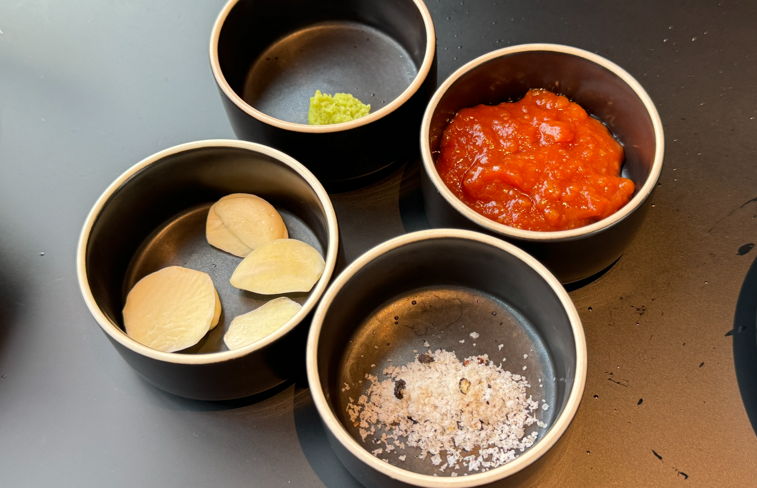 양념은 평범. 그래도 와사비를 줘서 좋았다. 그리고 세트에 있던 새우는 구이용이 아니라 멜젓에 썰어 넣는 용도인데 요게 또 일미였다. 굽기의 아쉬움을 각종 양념으로 메웠달까.