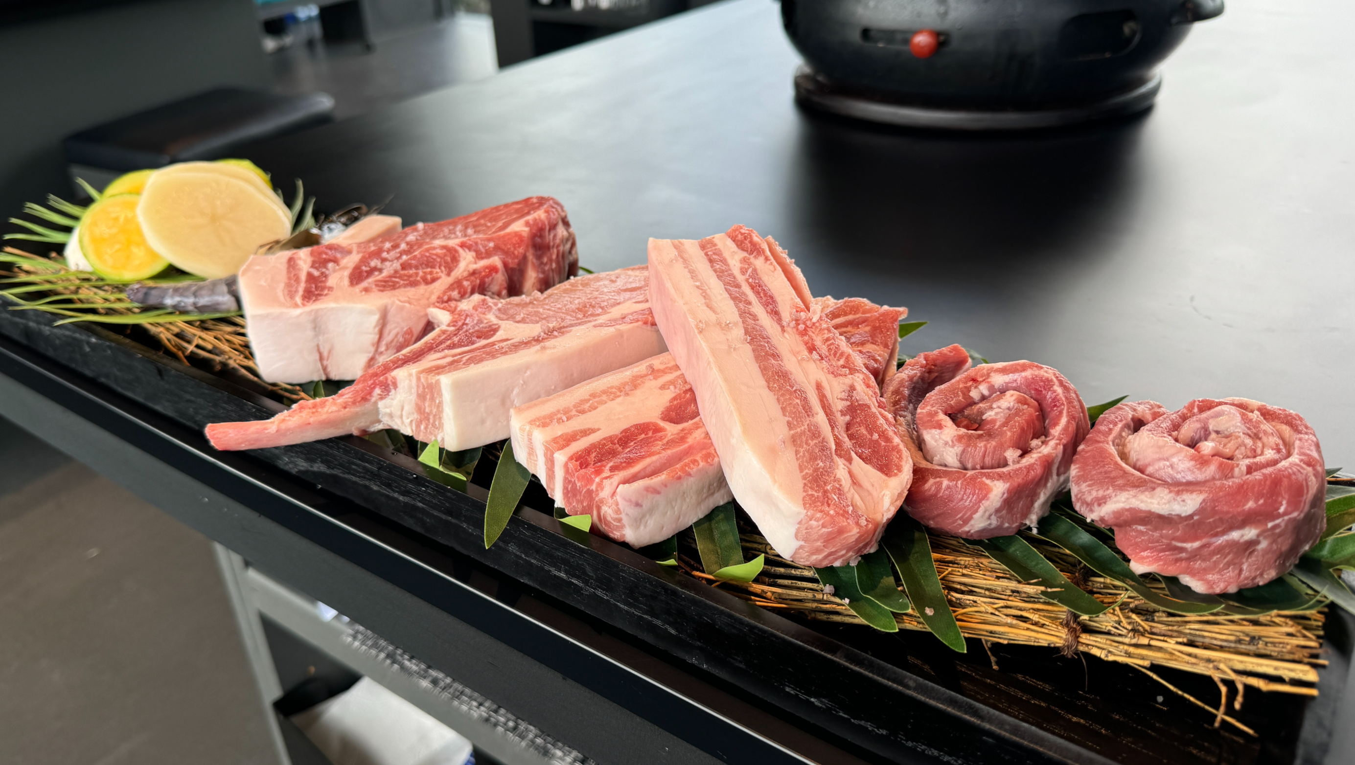 모둠 메뉴인데 일단 고기 질이 매우 좋아 보인다.