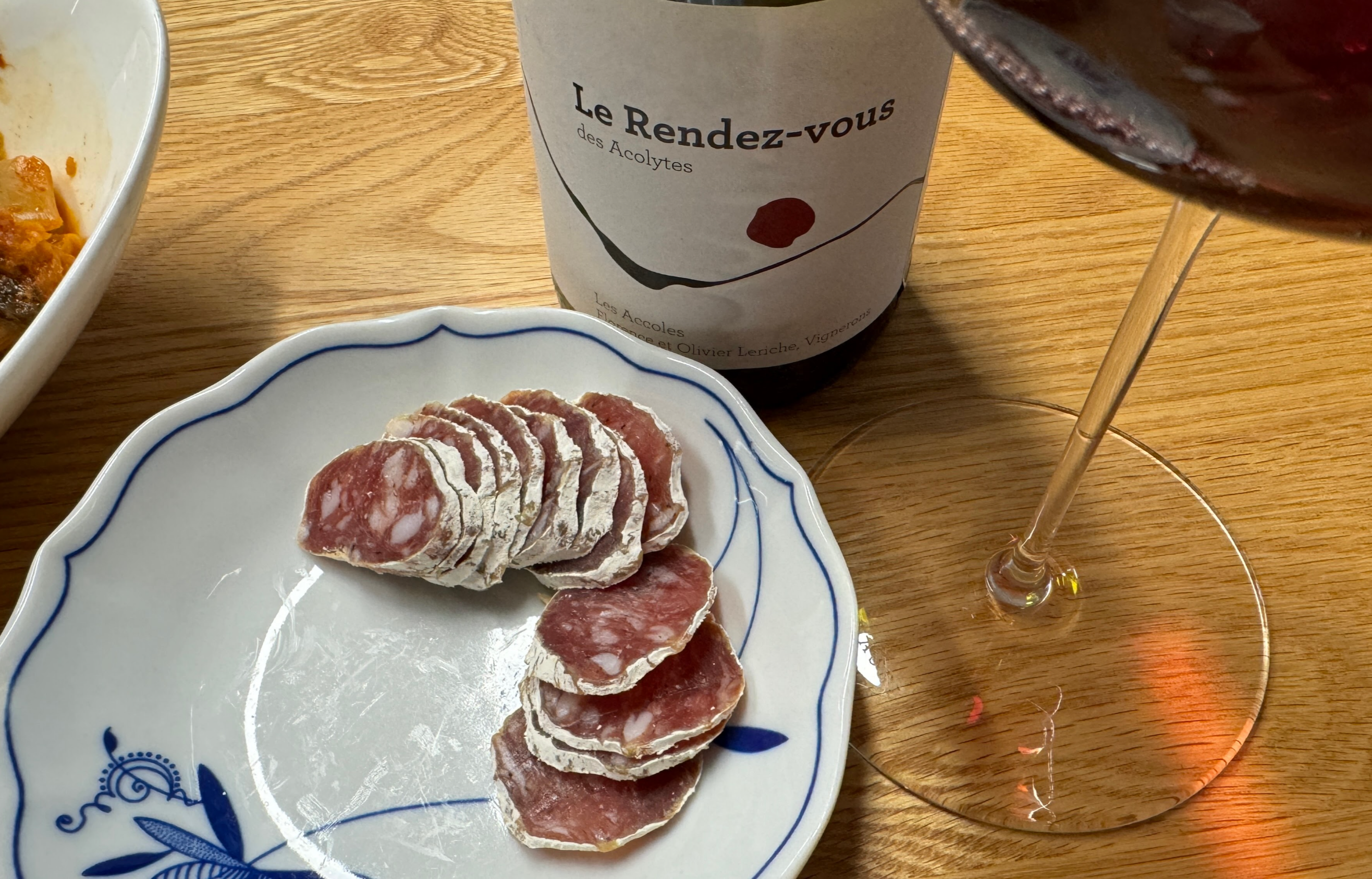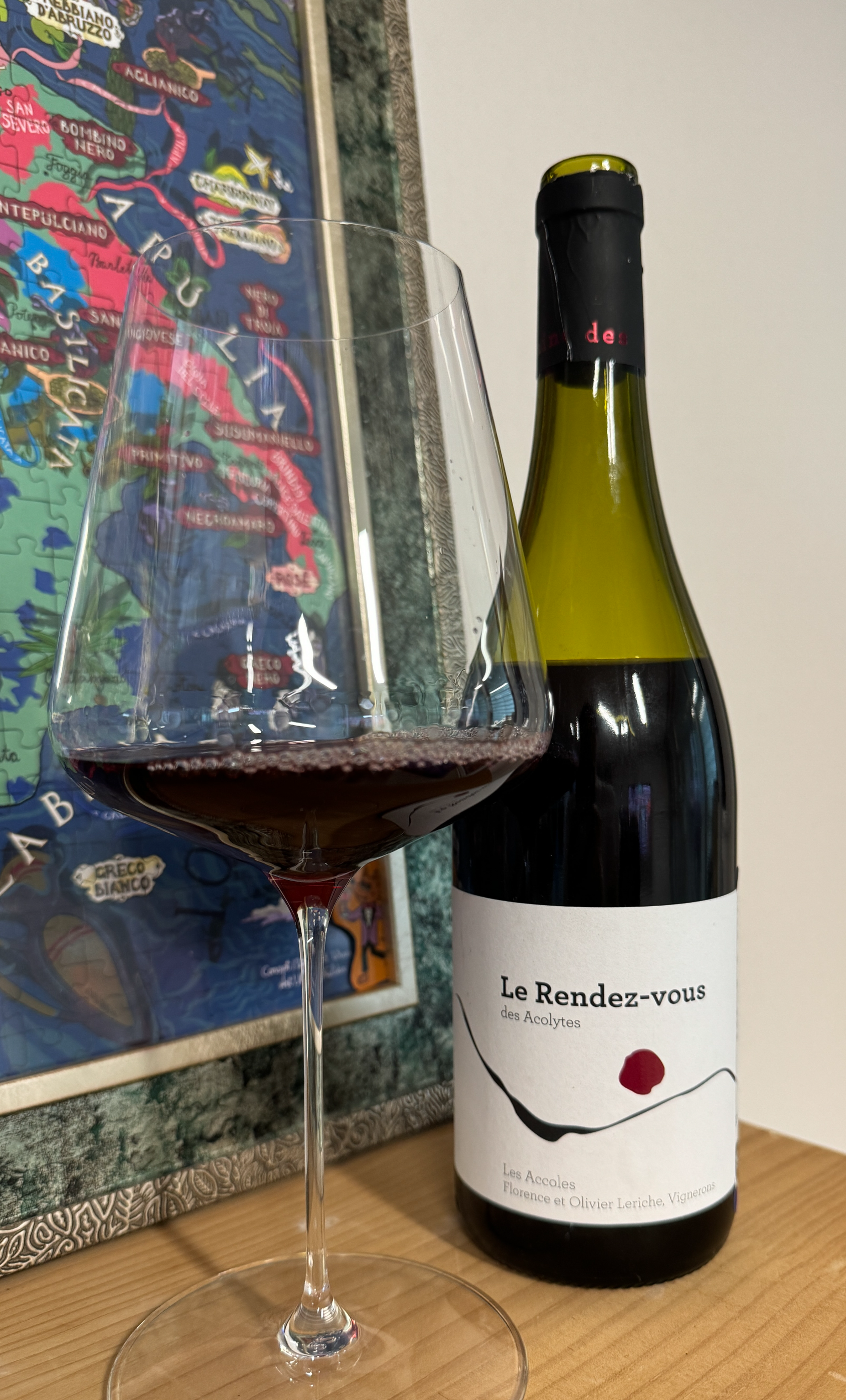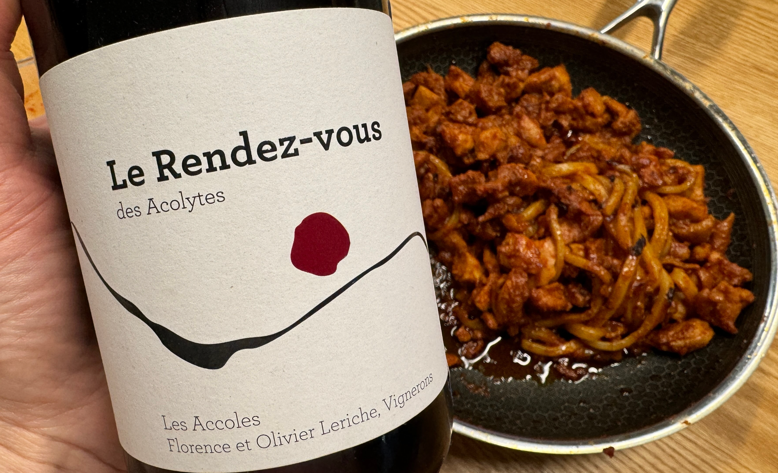 도멘 데 자꼴, 레 랑데부 데 자꼴리트(Domaine des Accoles, Le Rendez-Vous des Acolytes). 남부 론에서도 변방인 아르데슈(Ardeche)에서 만드는 내추럴 와인이다. 레이블이 왠지 동양화적인 느낌이라 마음에 들었고 가격도 저렴해서 구입.