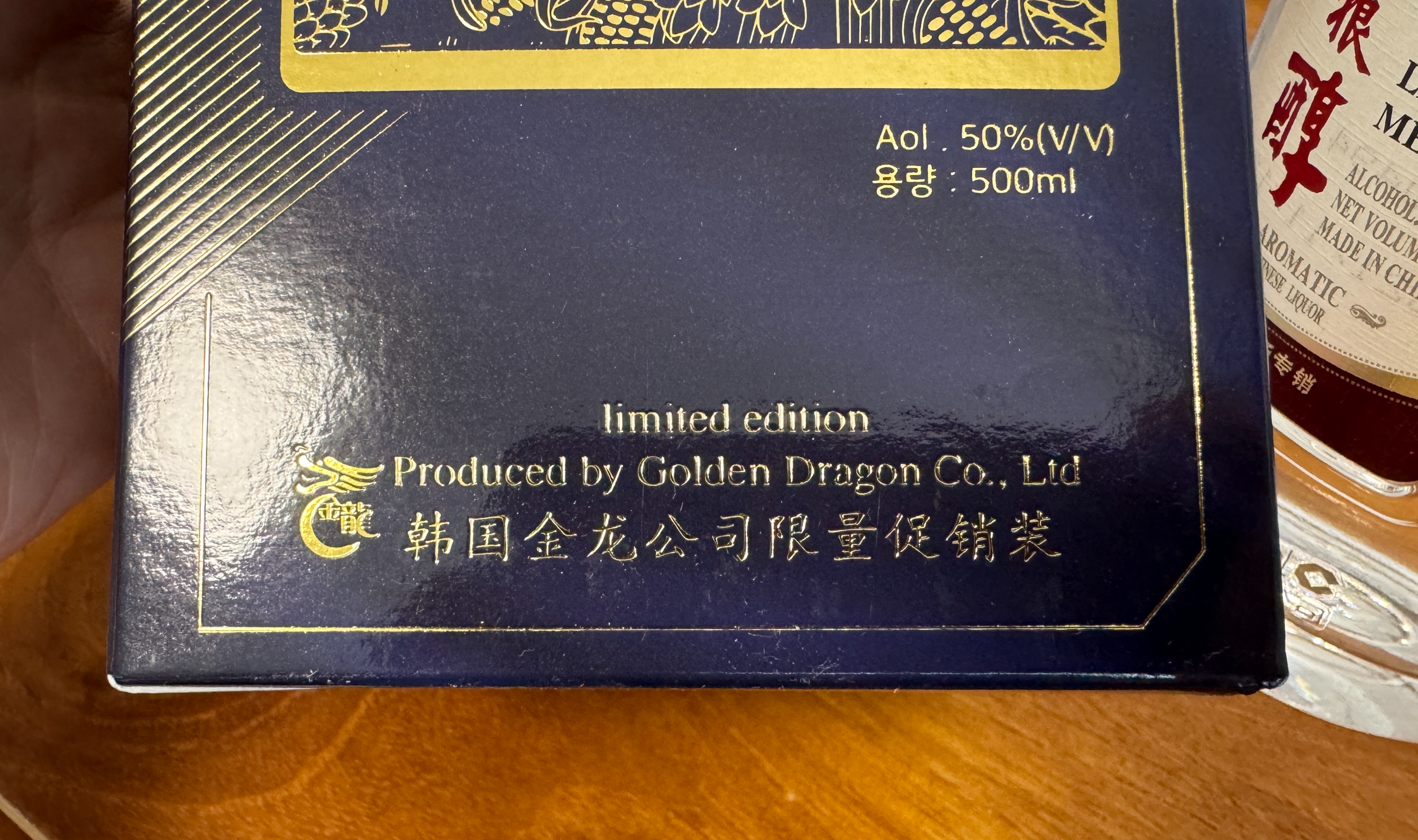 순(醇)의 훈과 음은 '진할 순'인데 영어로 mellow라고 번역해 놨다. 생각해 보니 적절한 의미인 듯. 하단 문구를 보니 오량순 50%은 해외시장 전용인 것 같다. 같은 술을 해외 수입자 요청에 따라 포장 등을 커스터마이징 해 주는 듯.