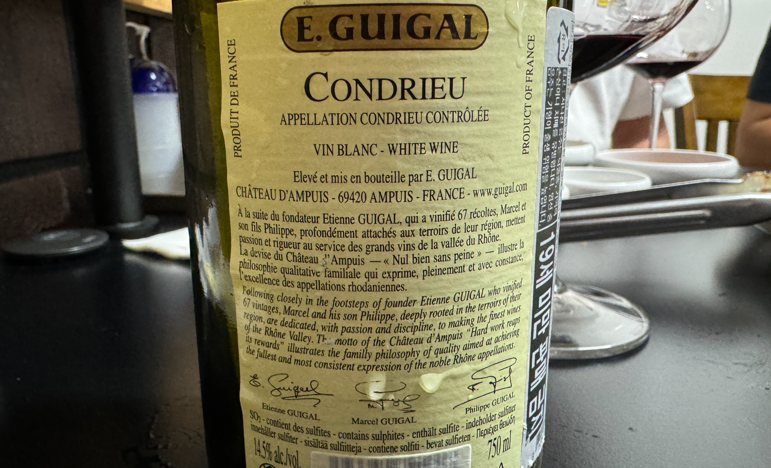 후배가 가져온 E. Guigal, Condrieu 2020. 장미 꽃잎과 리치, 완숙한 살구 풍미가 향수처럼 화사하게 피어난다. 살짝 비누 같은 뉘앙스도 느껴지는데, 온도가 높아지니 볶지 않은 아몬드나 구수한 고구마 껍질 같은 힌트도 드러나는 듯. 오랜만에 맛있는 비오니에(Viognier)를 마셨다. 안주와도 아주 잘 어울렸고.