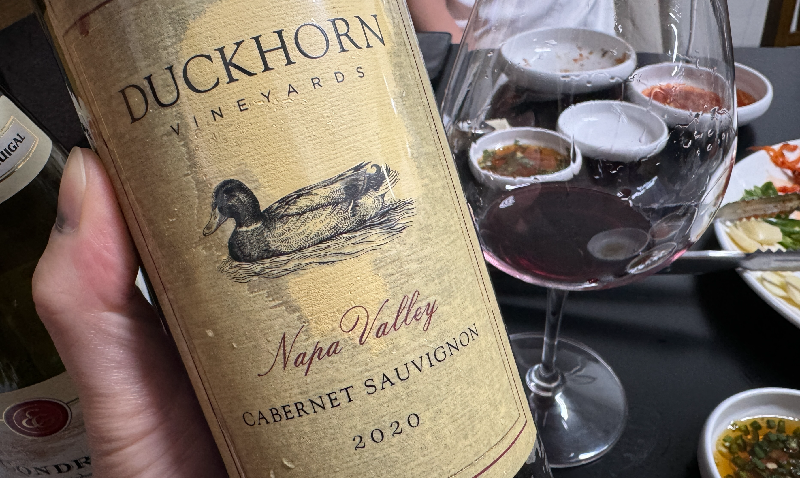 Duckhorn Vineyards, Napa Valley Cabernet Sauvignon 2020. 덕혼은 메를로(Merlot)가 유명하지만 이날 마신 것은 카베르네 소비뇽. 처음부터 진한 검은 베리 풍미와 홍차 같은 그윽한 풍미가 일품이다. 입에서는 '생각보다는' 드라이한 미감이 인상적인데, jammy 하지 않으면서도 밀도 높은 과일 풍미와 피니시에서는 다크 초콜릿 뉘앙스가 매력적이다. 오, 기대를 뛰어넘는 만족감.