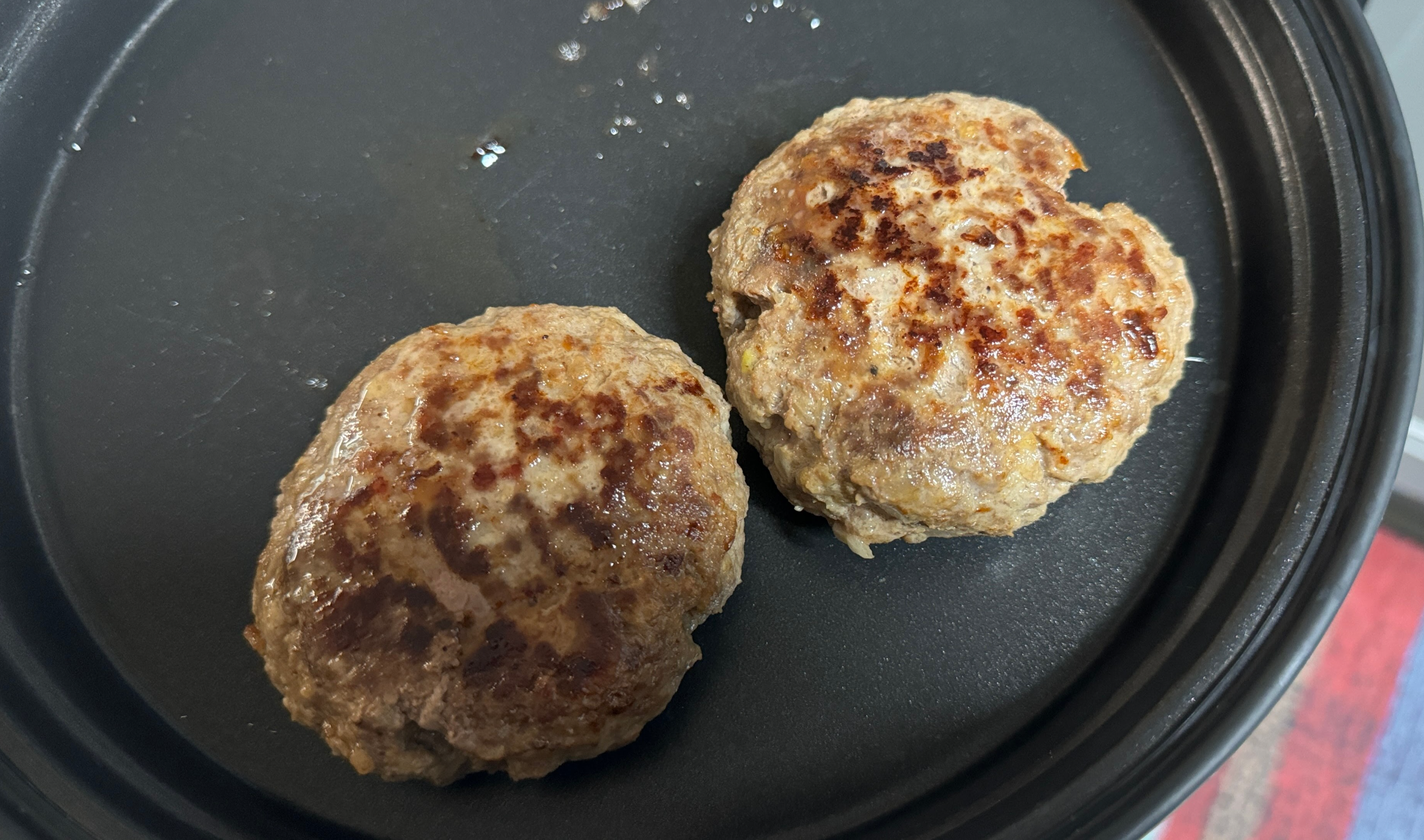 수제 함박 스테이크. 돼지고기와 소고기를 절반씩 섞고 버터에 볶은 양파와 빵가루를 넣어 풍미와 식감을 더했다.