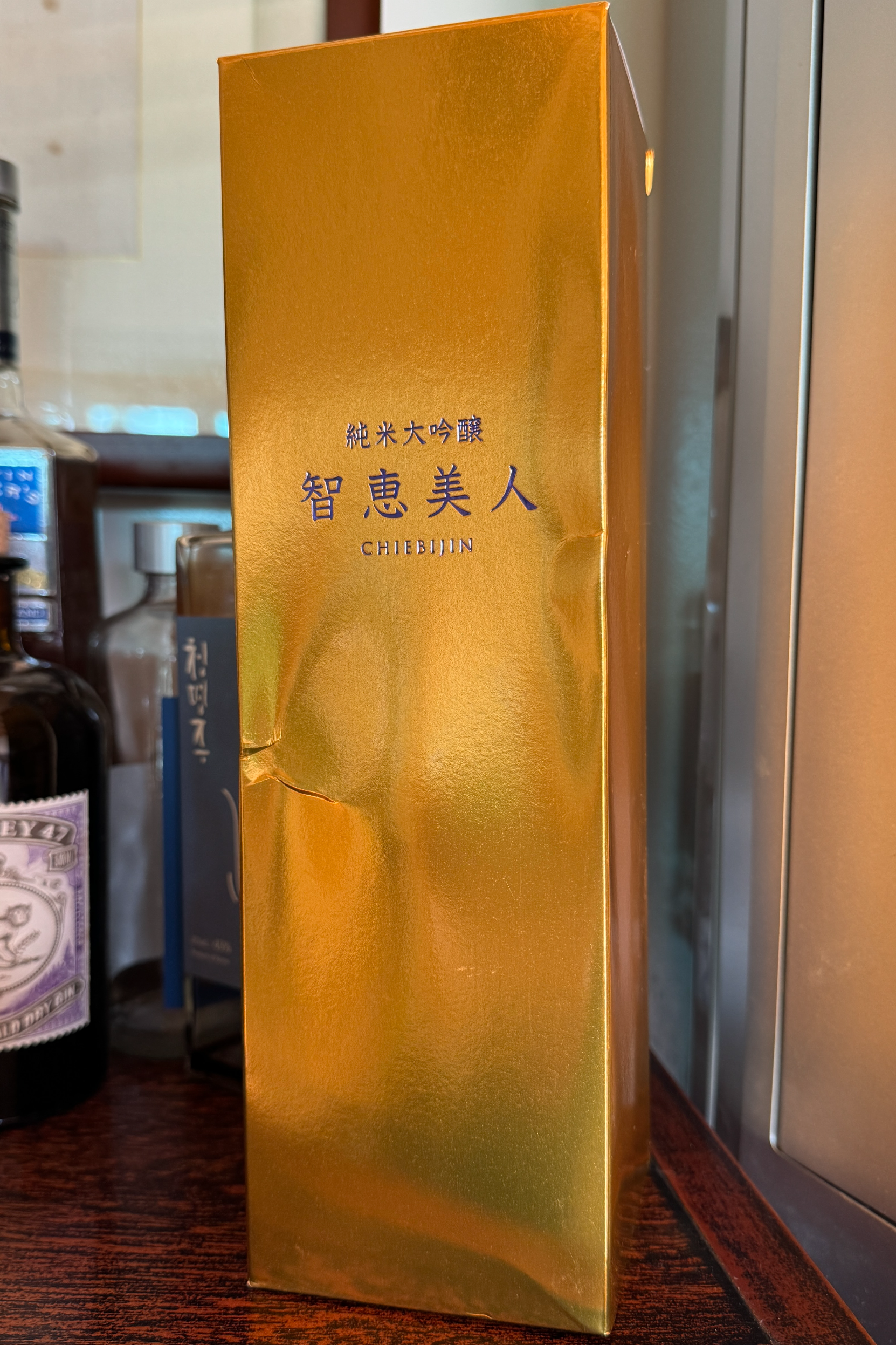 치에비진 준마이다이긴죠(智慧美人 純米大吟釀). 10월 말 후쿠오카에 다녀오신 부모님이 사 오신 사케다.