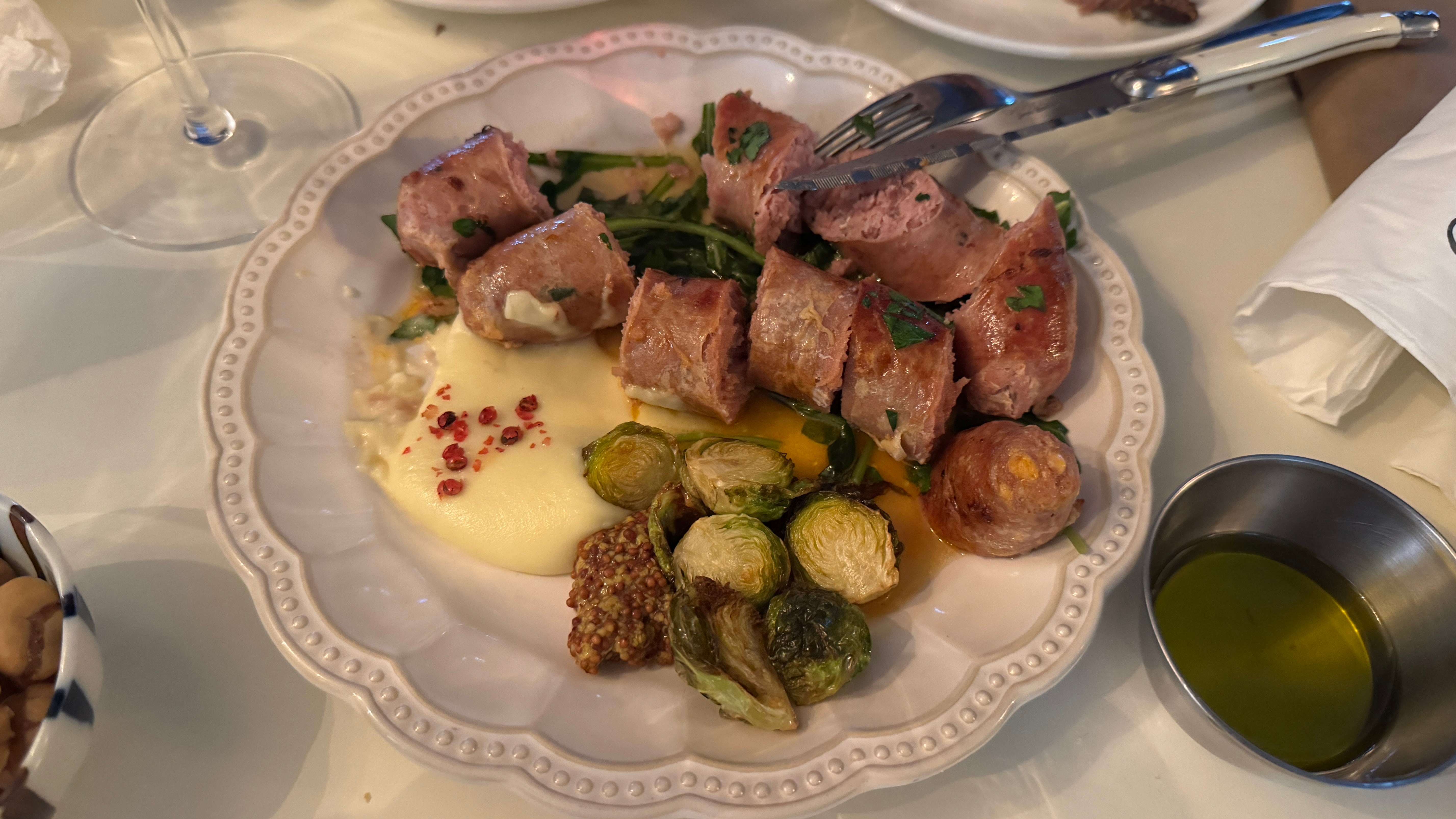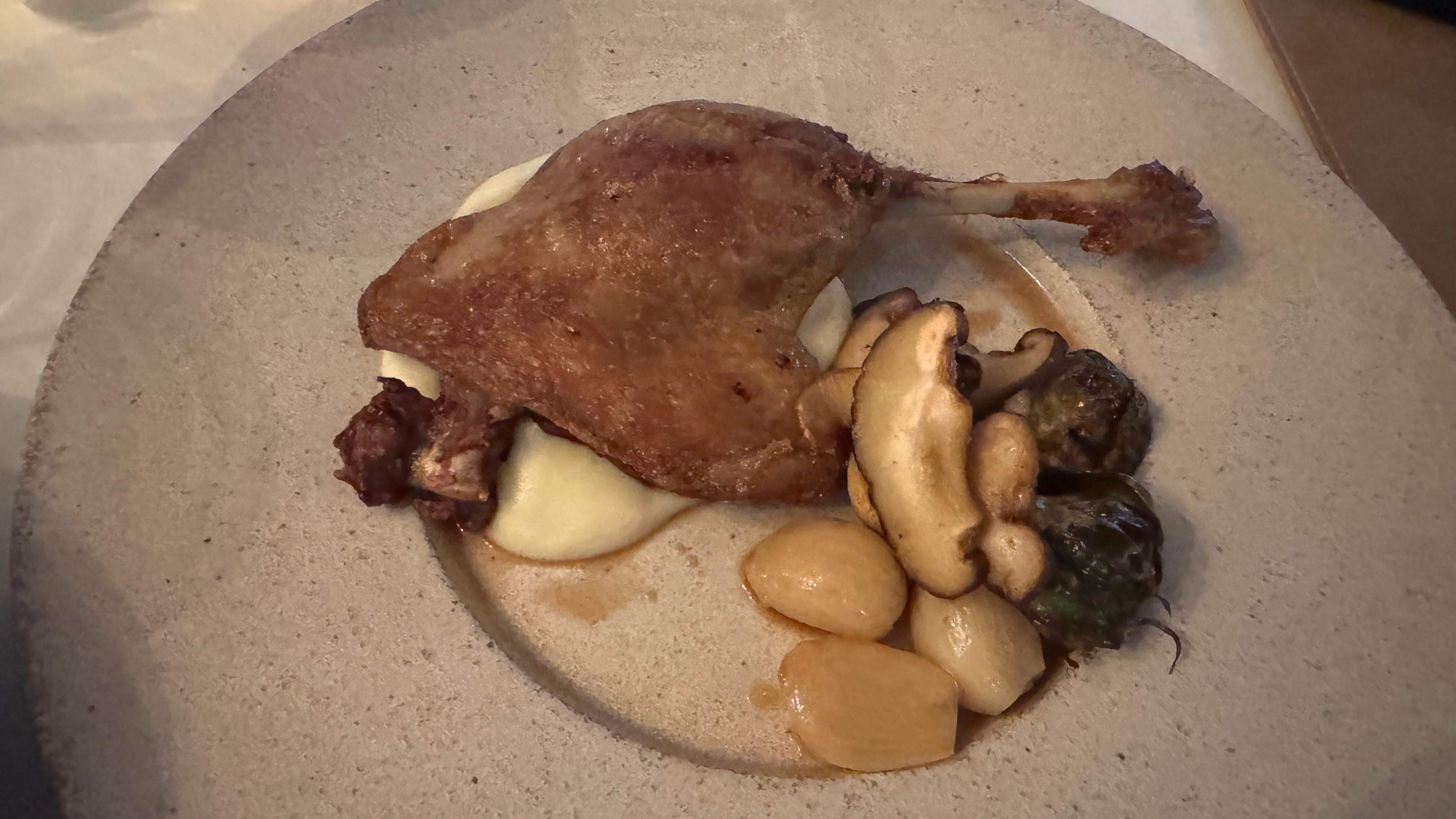 두 번째 와인은 Francois Villard, Crozes-Hermitage Certitude 2018. 바이올렛, 화한 민트 허브, 검은 베리, 토스티 오크 뉘앙스가 조화롭게 어우러진다. 산미와 타닌은 과하지 않고 풍미의 밀도는 깊은데 바디는 무겁지 않아 편하게 술술 넘어간다. 오리, 그리고 뒤이어 나온 살시차와 아주 잘 어울렸음.