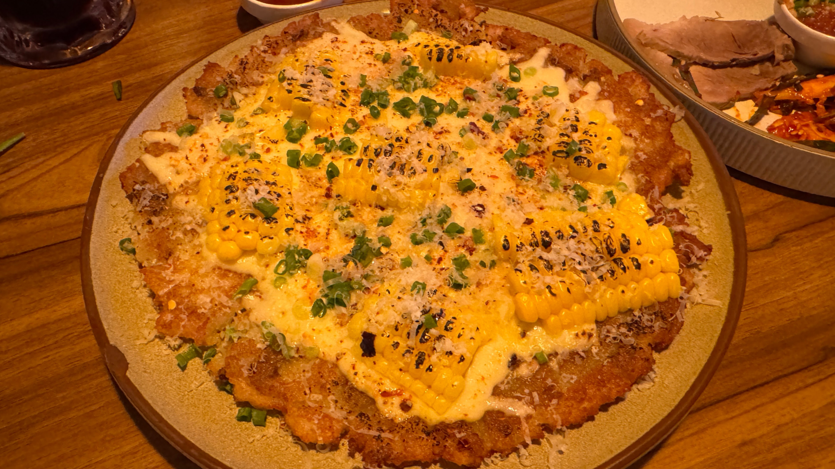 옥수수 치즈 감자전. 복잡해 보이지만 심플한 맛으로 다양한 술과 모두 잘 어울린다.