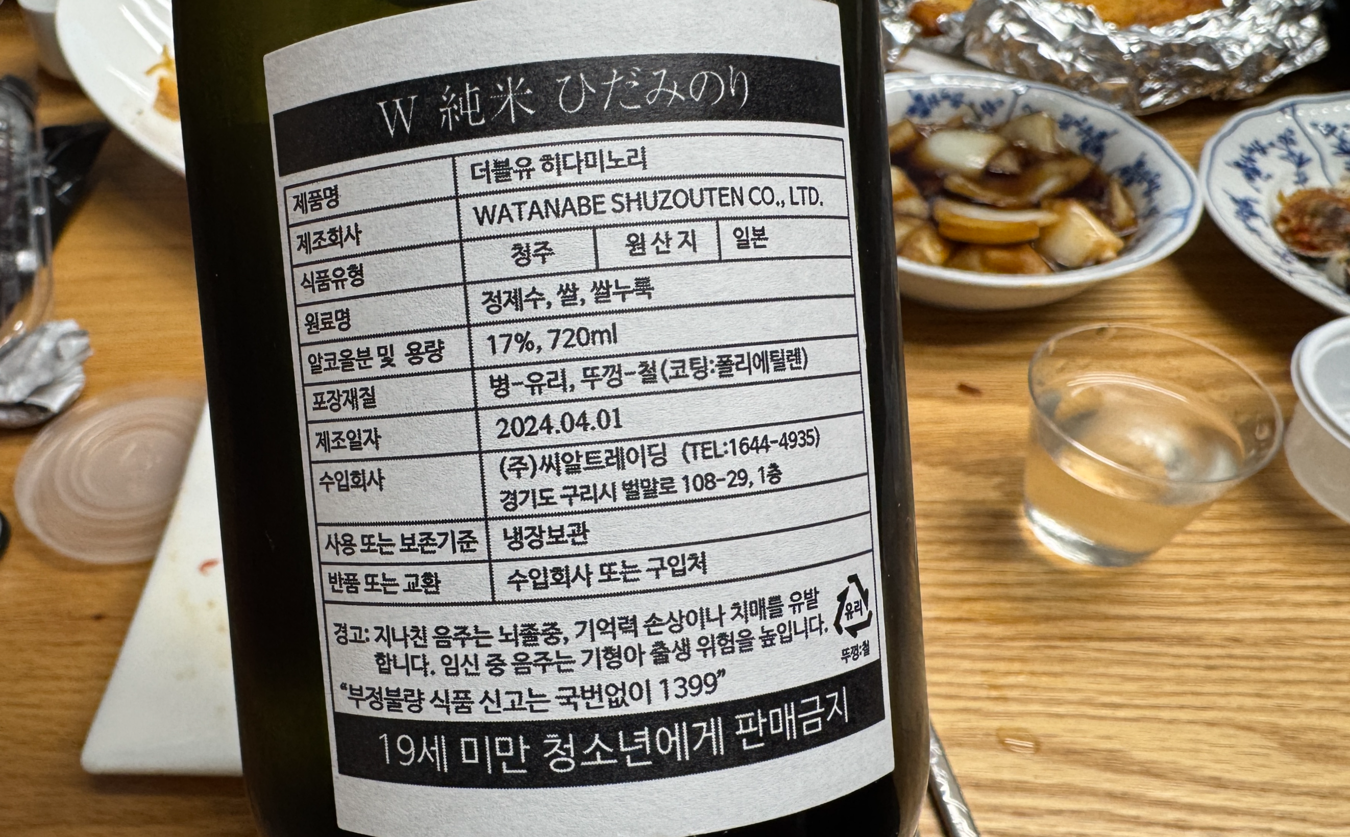 위스키 모임에서 참석자가 직구한 와타나베 슈조텐의 사케를 마셔본 적이 있었는데 그건 열처리한 히이레(火入)였다. 최근 한 샵에서 특별히 추천해 주셔서 구매했는데 나쁘지 않은 듯.