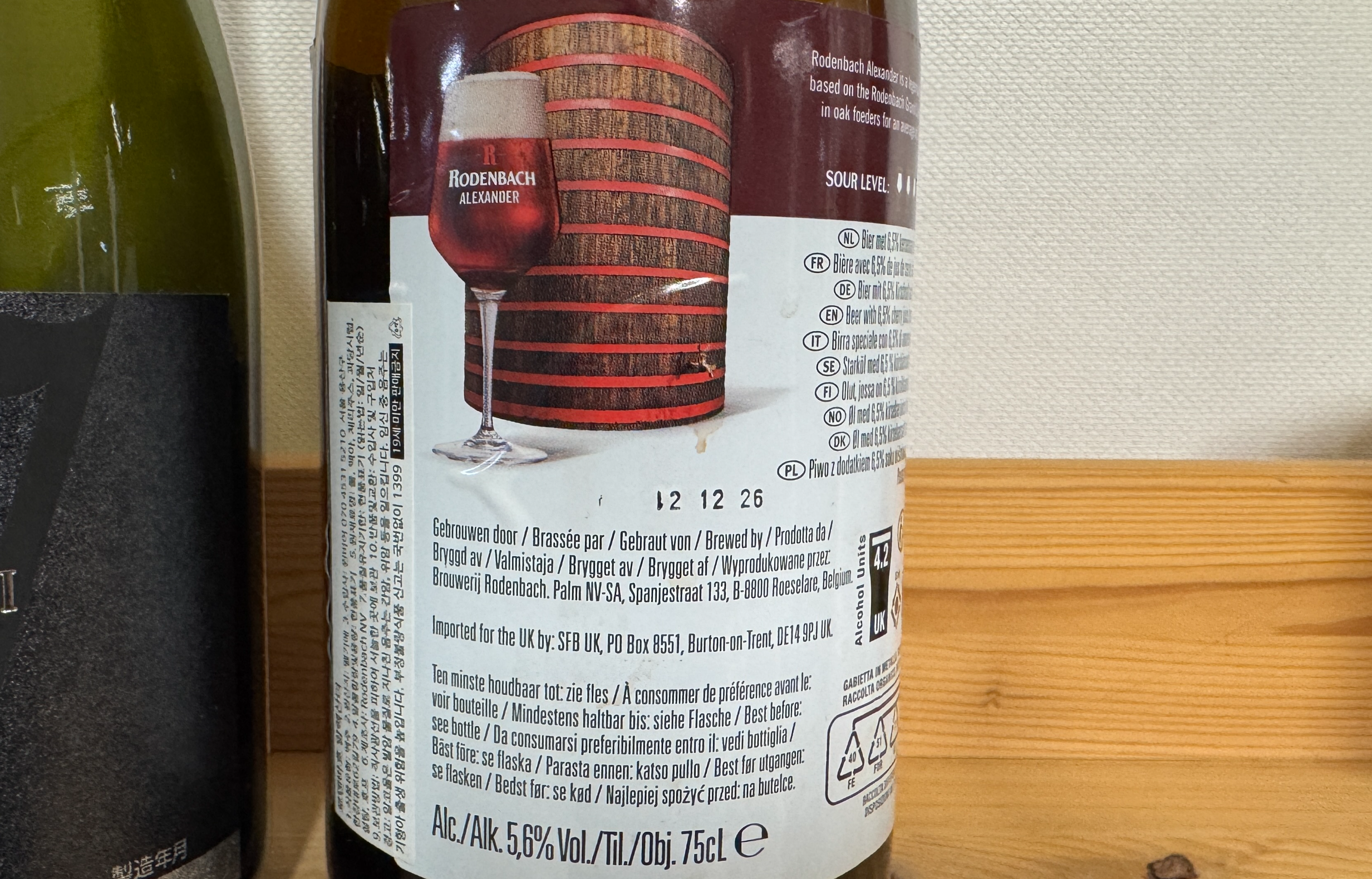 로덴바흐, 알렉산더(Rodenbach, Alexander). 하단에 적힌 'The Belgian Sour Beer with Sour Cherry Juice'라는 문구에서도 알 수 있듯, 사워 체리 주스를 첨가해 만든 전통 벨기에 사워 맥주다. 18개월 동안 커다란 오크통(foeder)에서 숙성했다.
