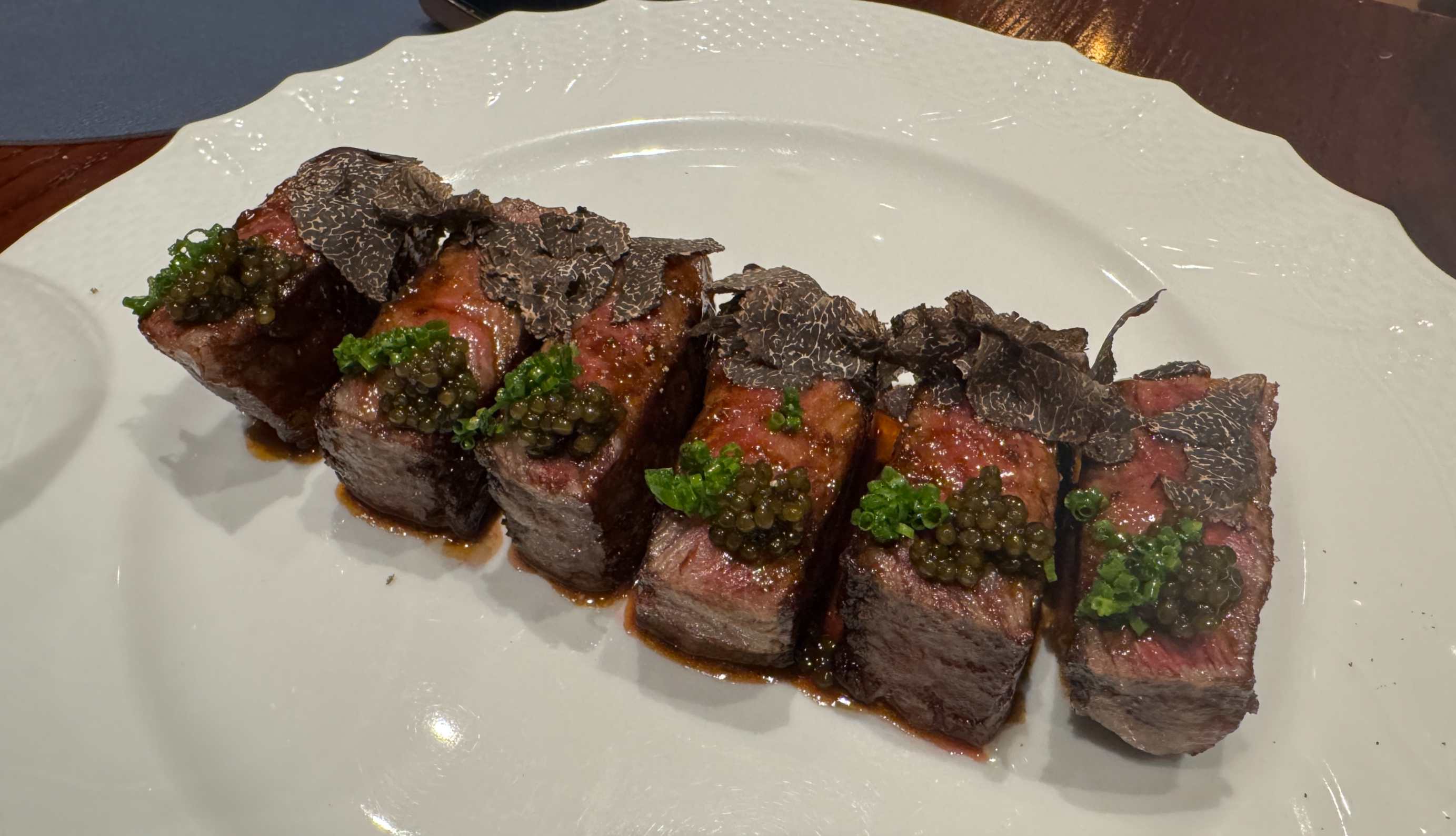 트러플을 곁들인 채끝 스테이크도.