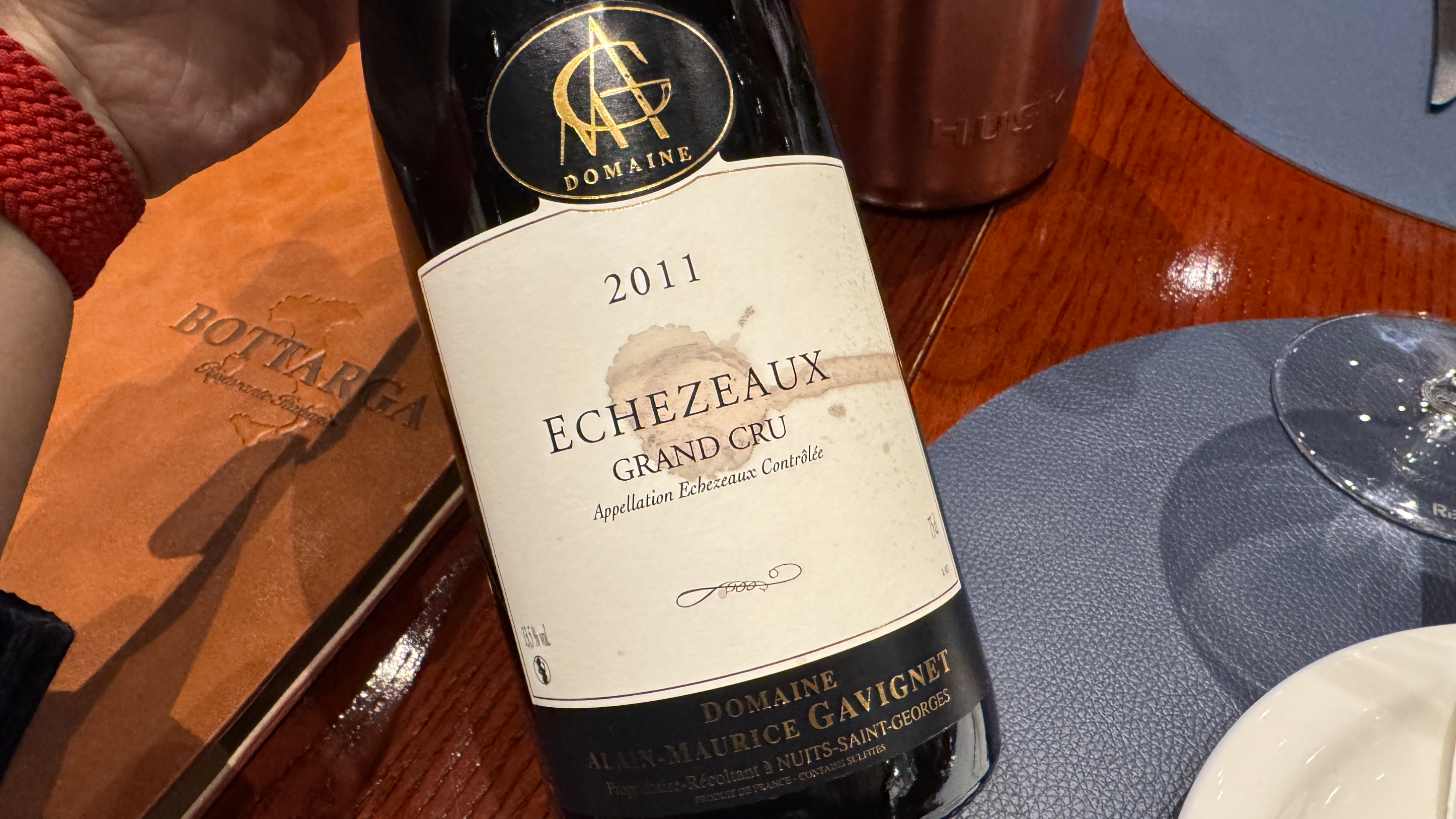 Domaine Alain-Maurice Gavignet, Echezeaux 2011. 레이블의 무늬(?)는 원래 있는 게 아니라 다른 와인이 새서 묻은 거라곸ㅋㅋㅋㅋ 너무 잘 어울려서 원래 디자인인 줄 알았다.