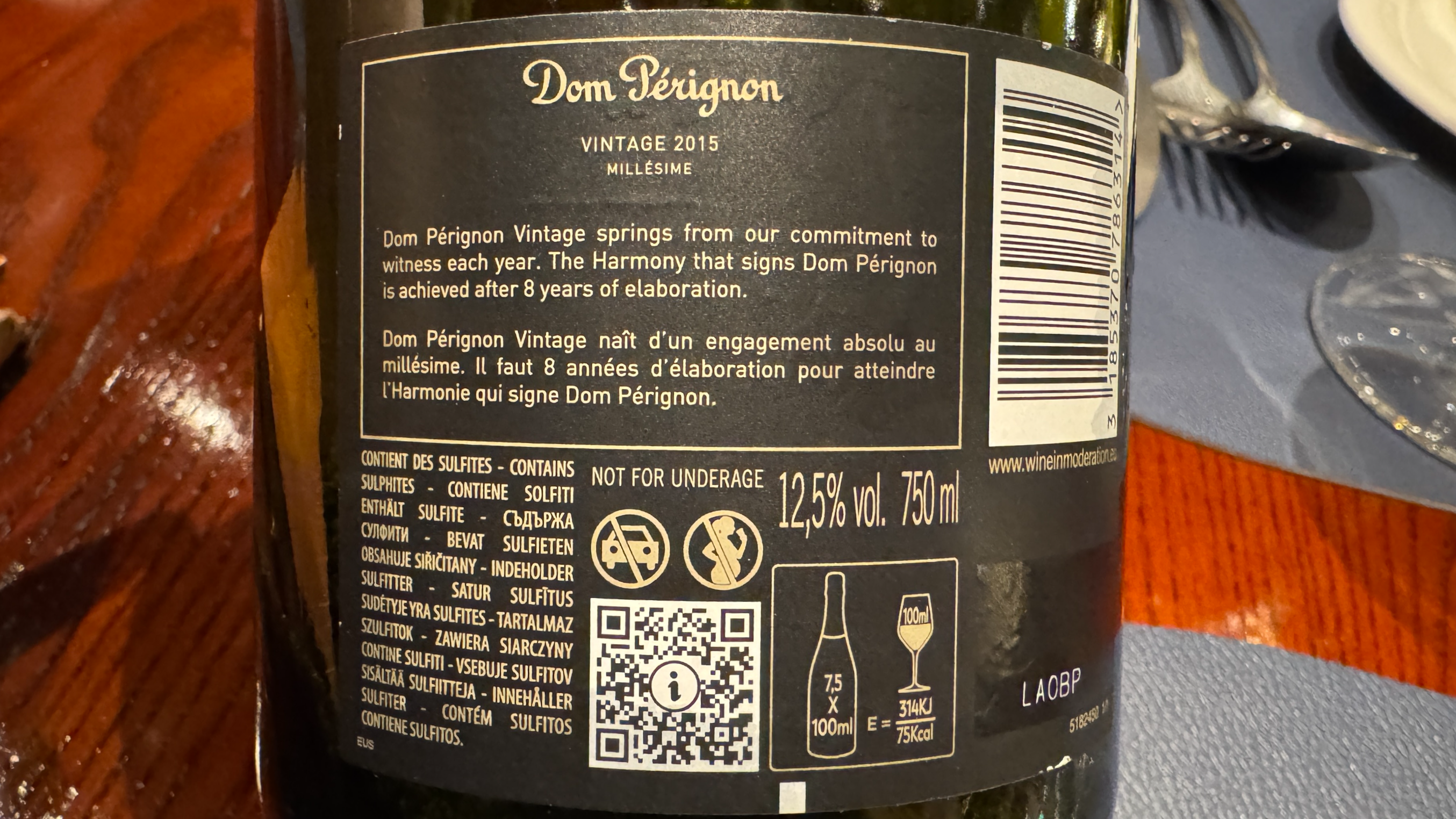 Champagne Dom Perignon 2015.