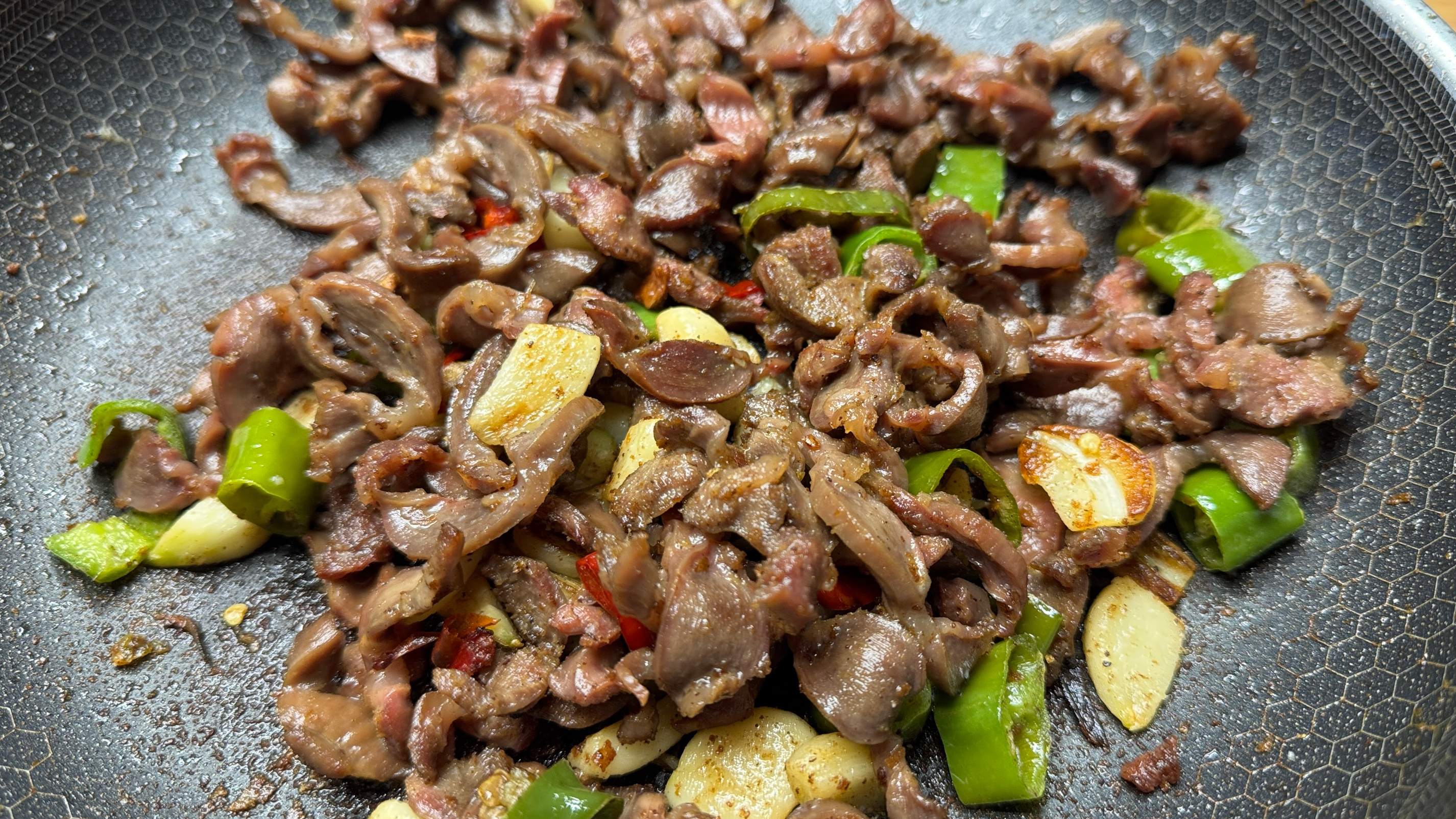 저녁에는 매콤하게 볶은 닭똥집 볶음과 마셨는데, 요것 역시 와인의 애매한 뉘앙스를 가려 준 듯.