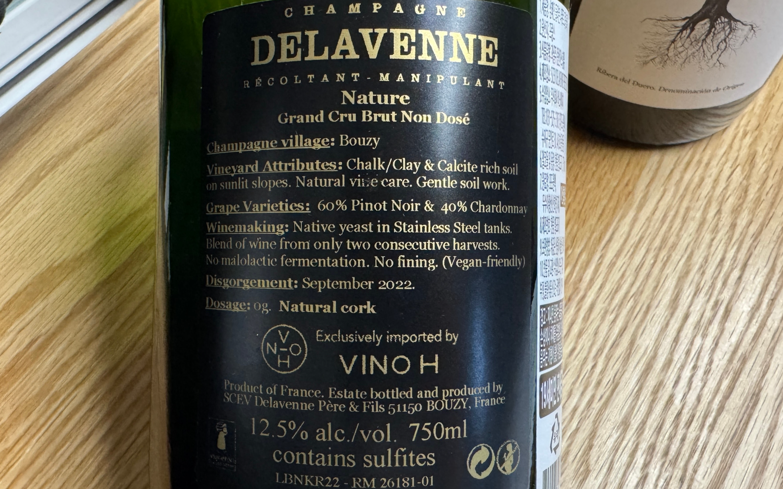 Champagne Delavenne, Nature Brut Non Dose Bouzy Grand Cru. 도자주를 하지 않은 샴페인이다.