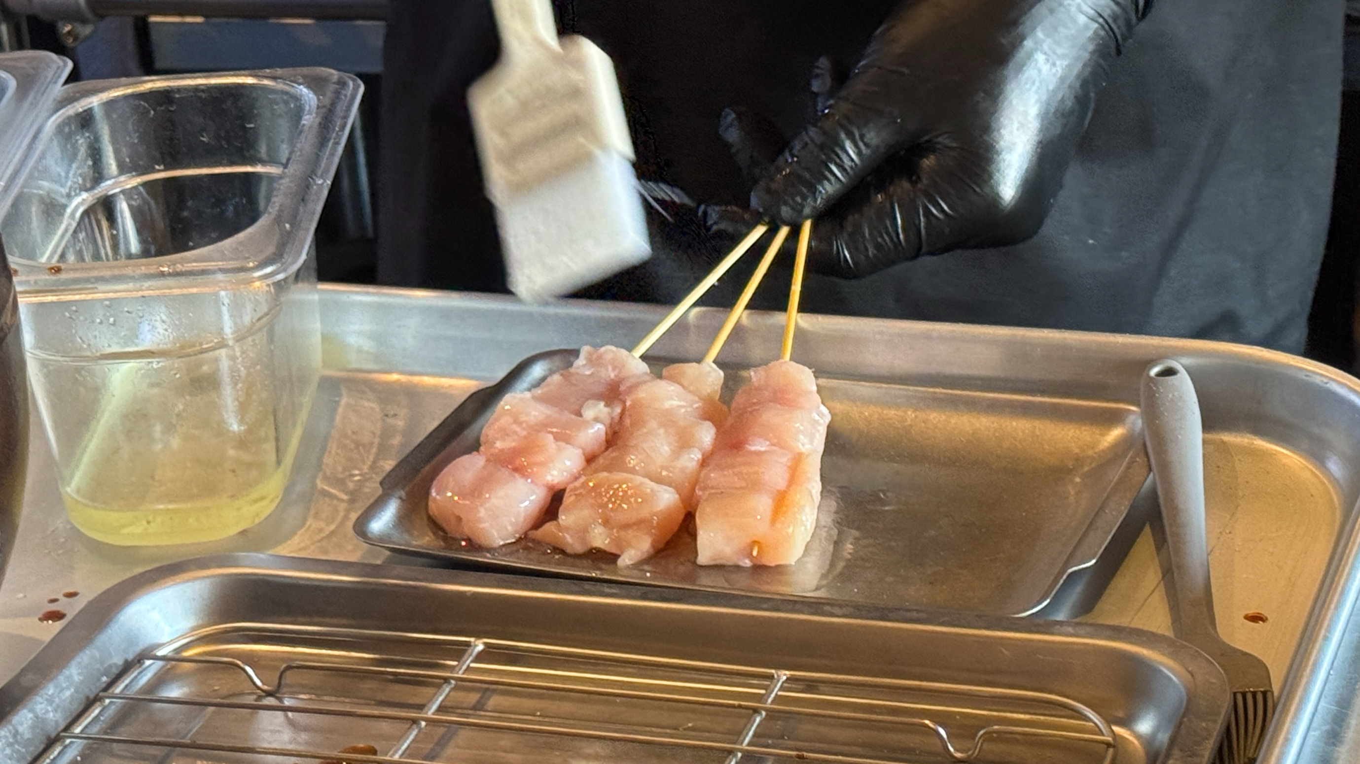 첫 꼬치는 닭안심이다. 직접 정형한 생물 닭을 바로 꼬치에 꽂아 준비해 주신다.