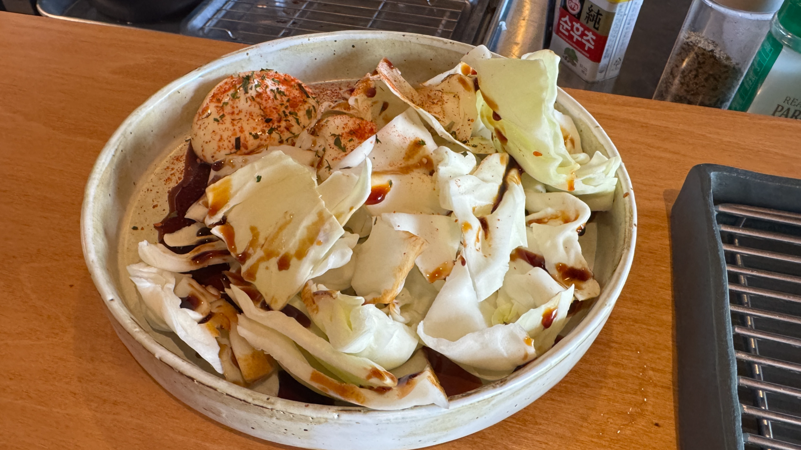 기본 안주는 개인적으로 참 좋아하는 생 양배추. 마요네즈 찍어먹으니 핵꿀맛이다.