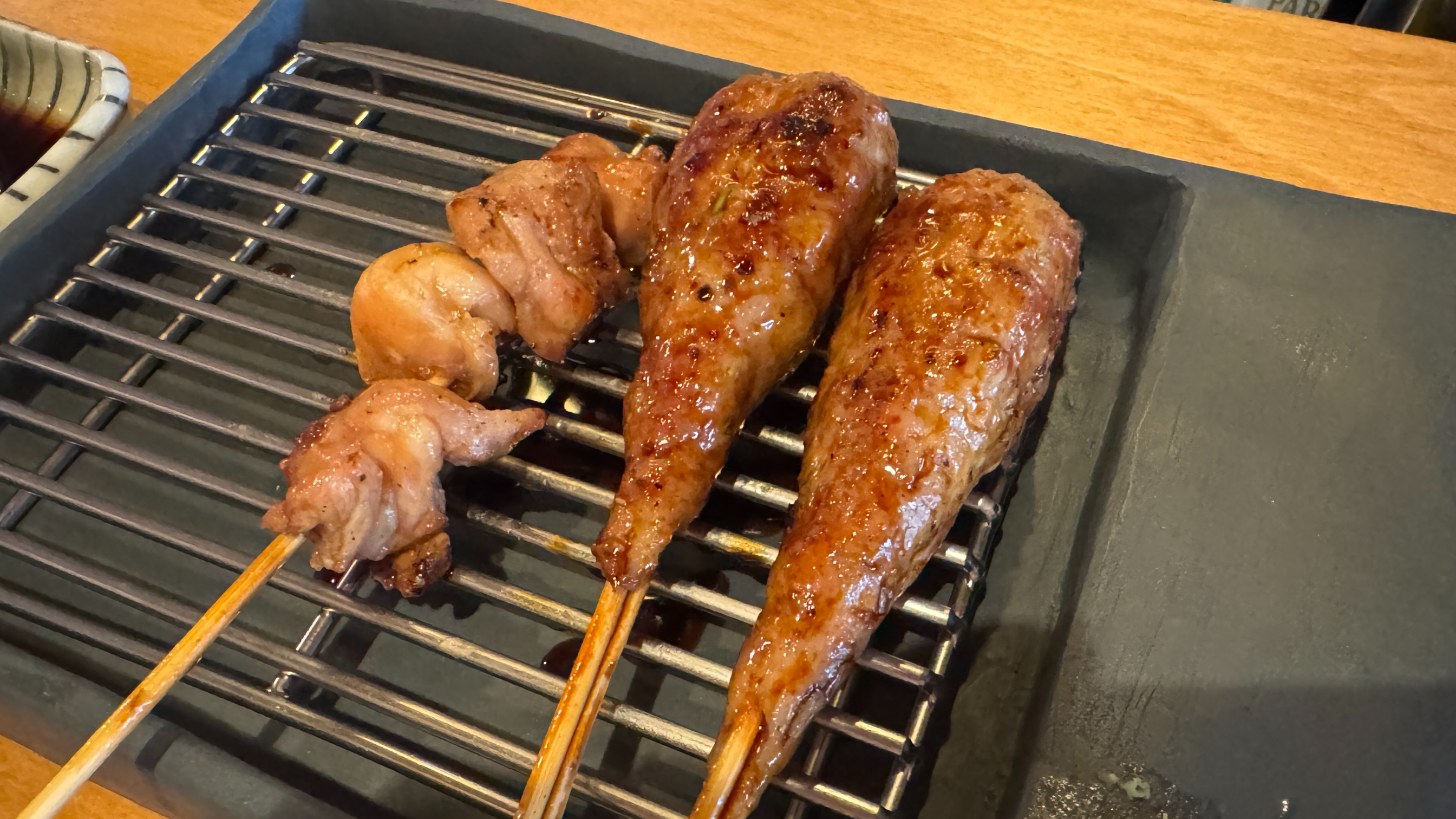 두 번째 추가는 닭껍질. 먹은 꼬치 중 가장 바삭하게 구웠는데, 식감이 아주 적당하다.