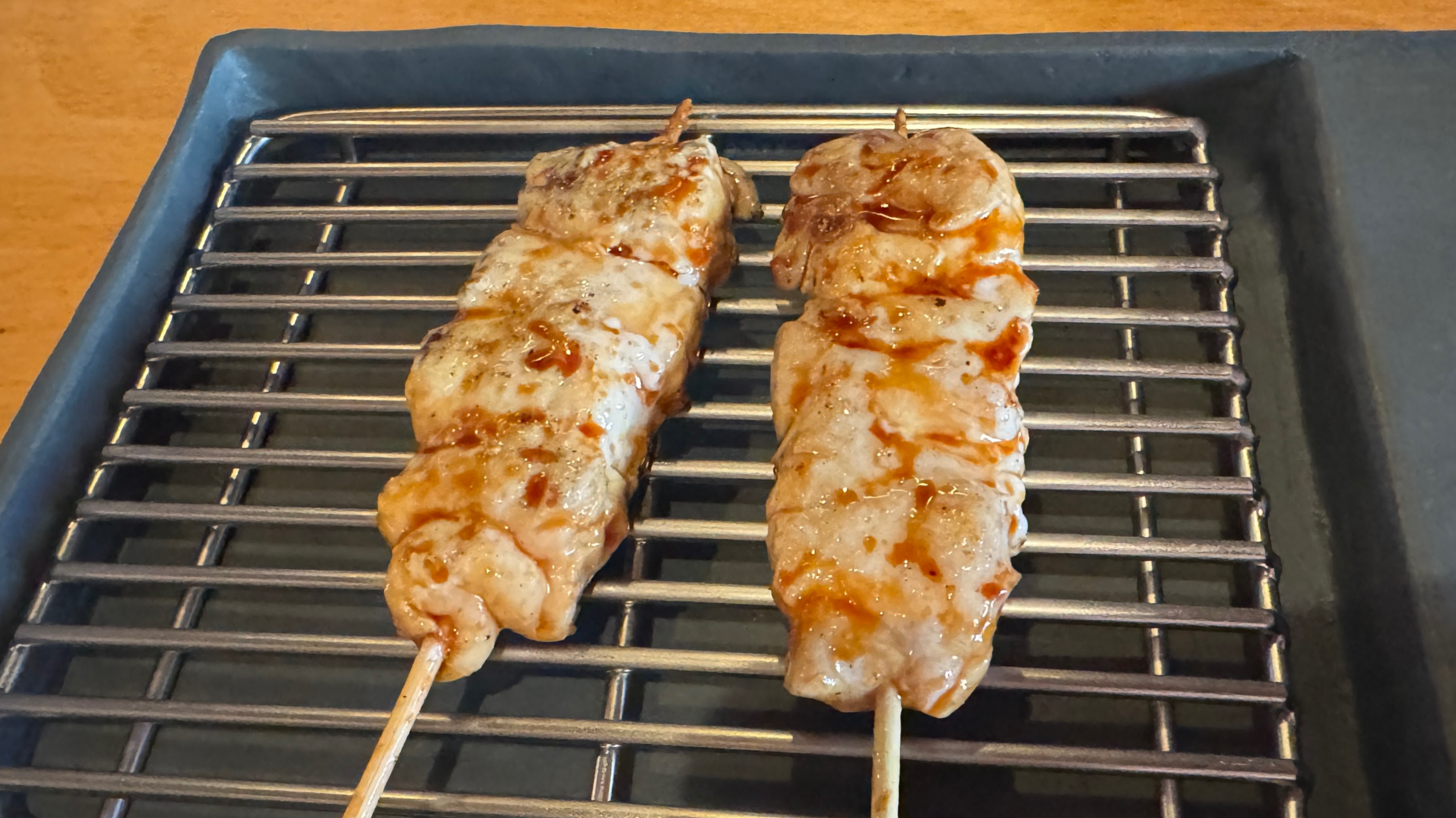 첫 꼬치는 닭 안심. 상당히 부드럽게 구워내서 안심 은은한 육향이 담백하게 살아 있다.