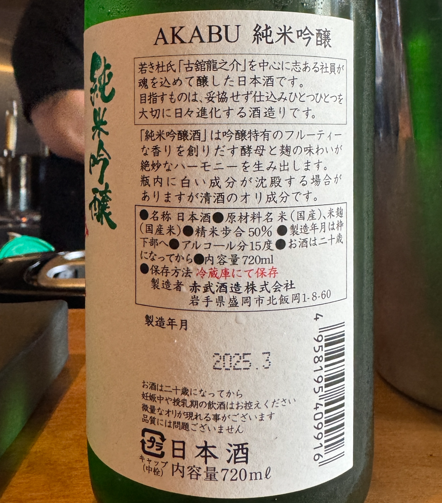 준비해 간 술은 아카부 준마이긴죠(AKABU 純米吟釀).