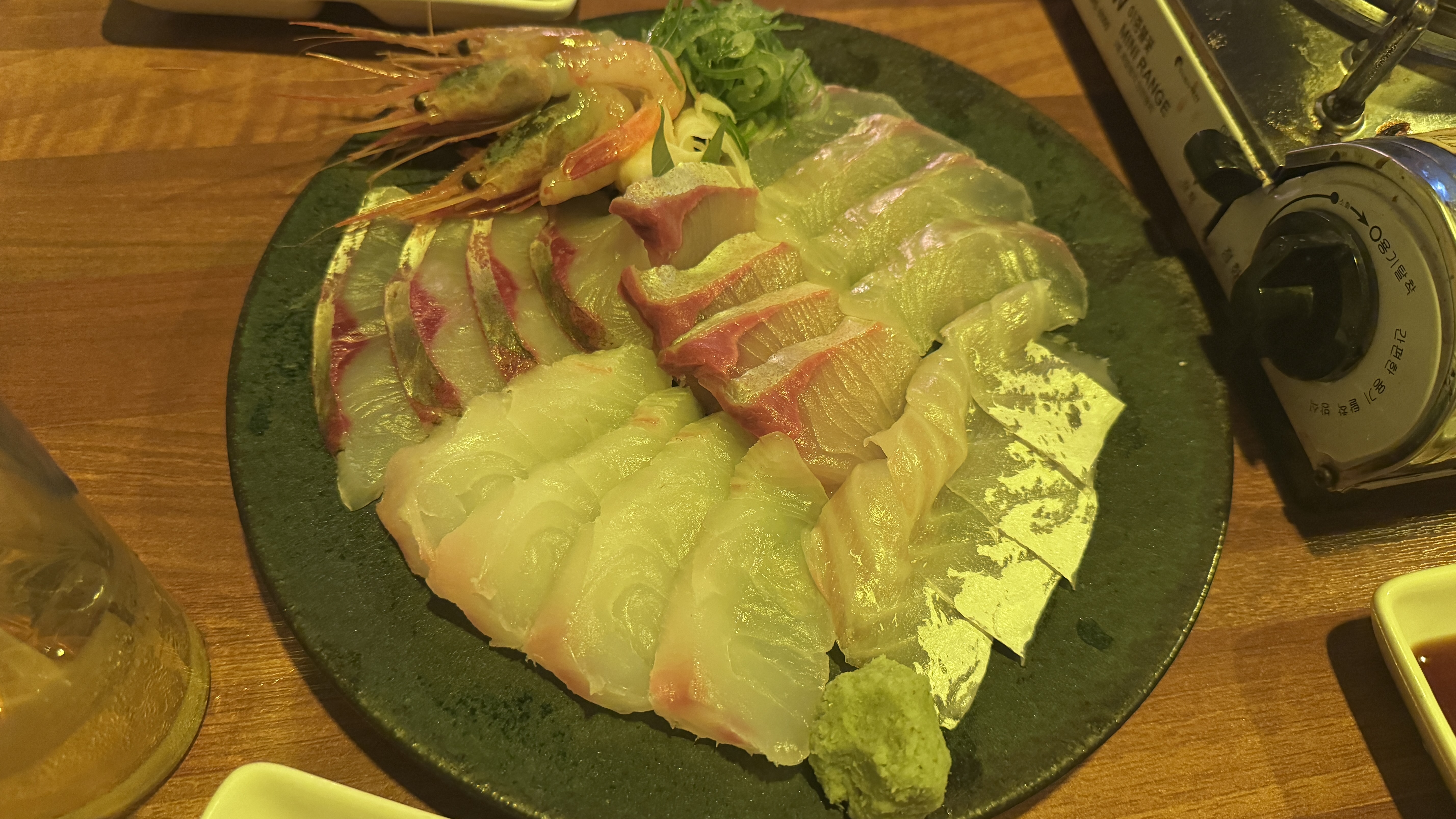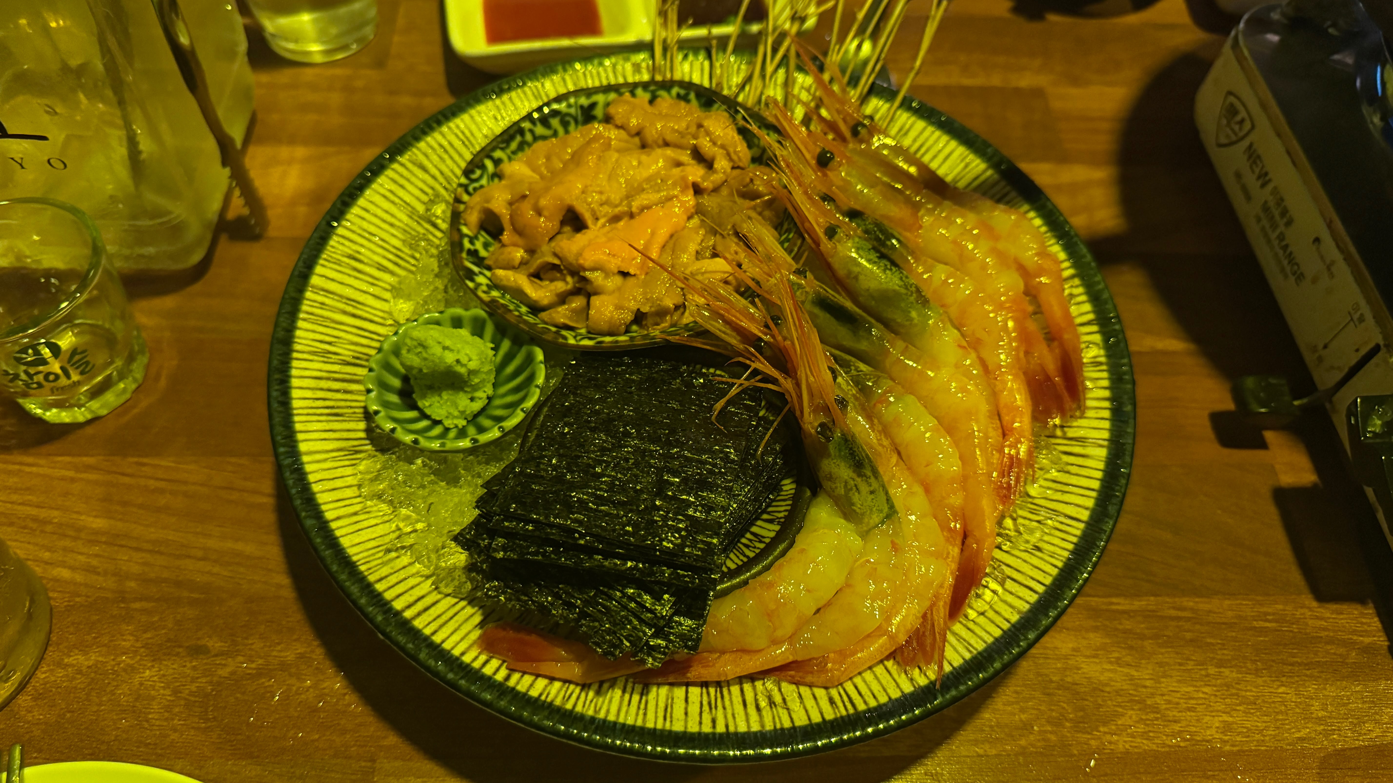 우니와 단새우. 여기에 새우튀김까지 시켰다. 2차도 아주 뽀지게 먹고 마심.
