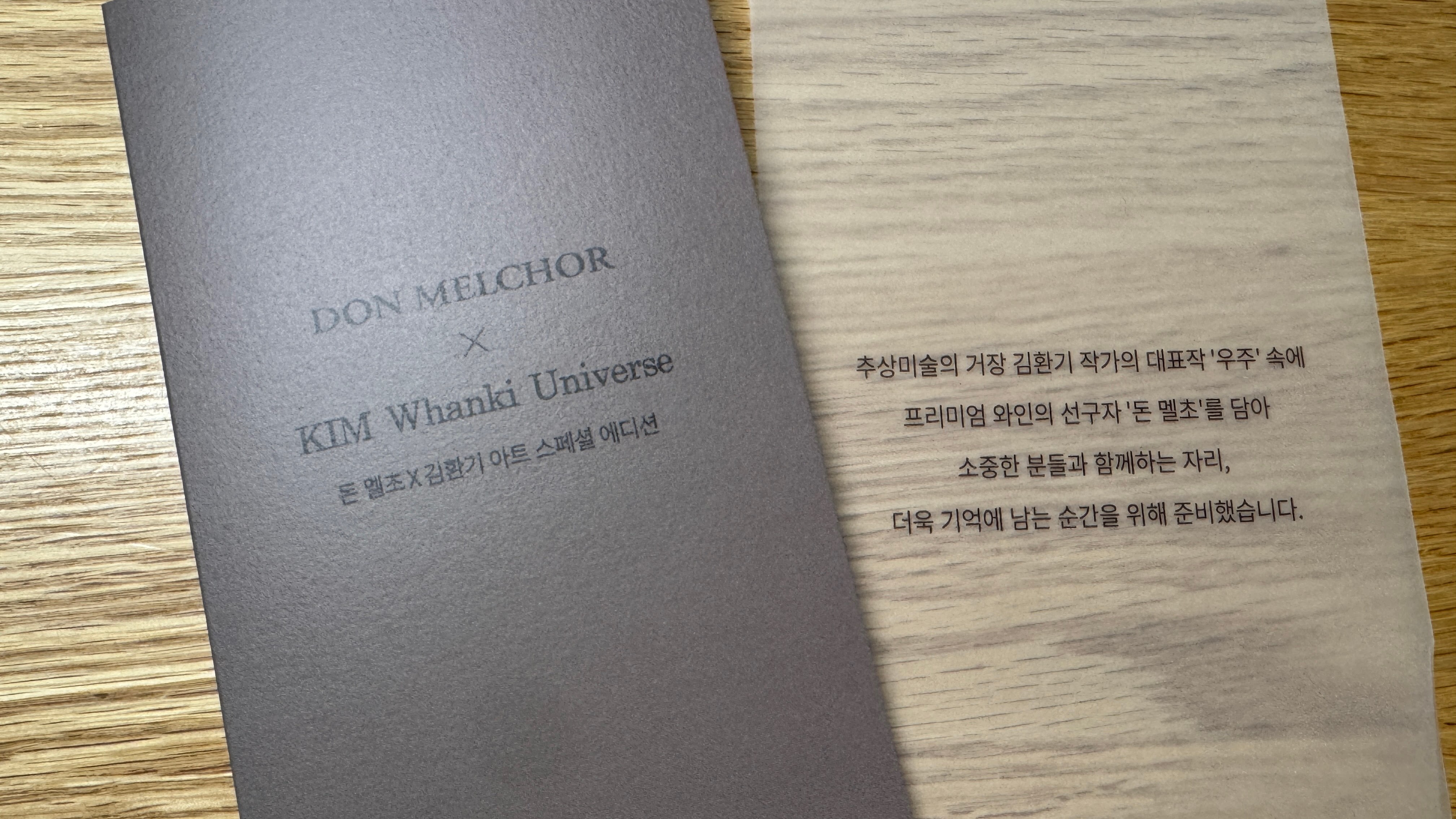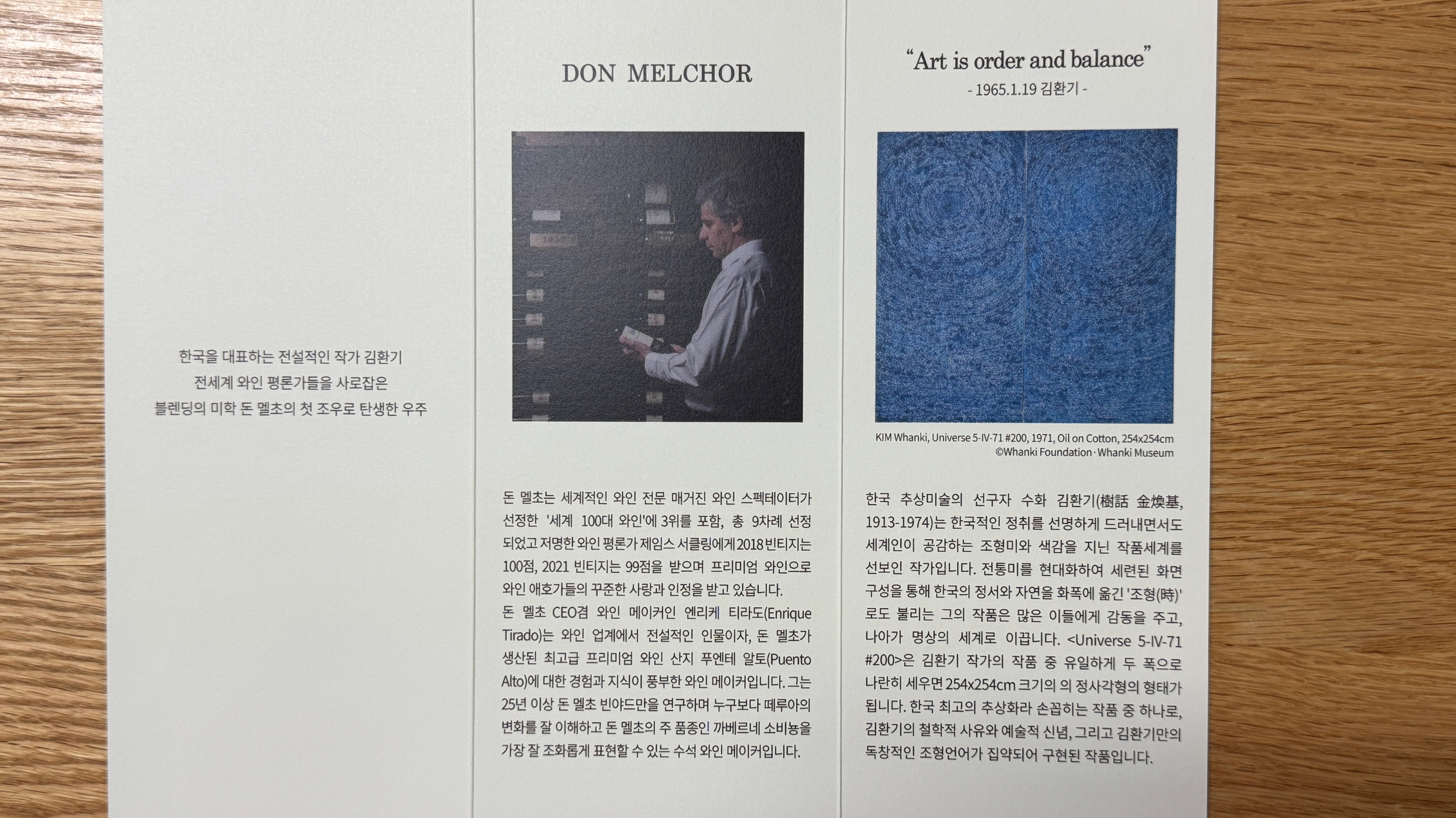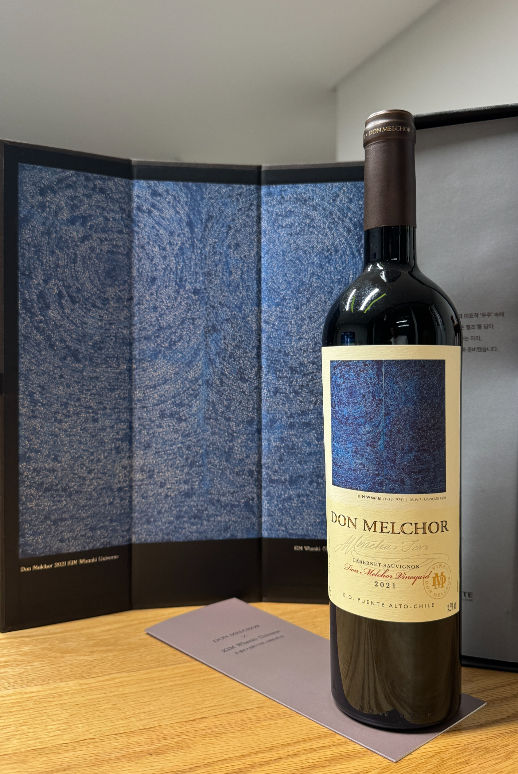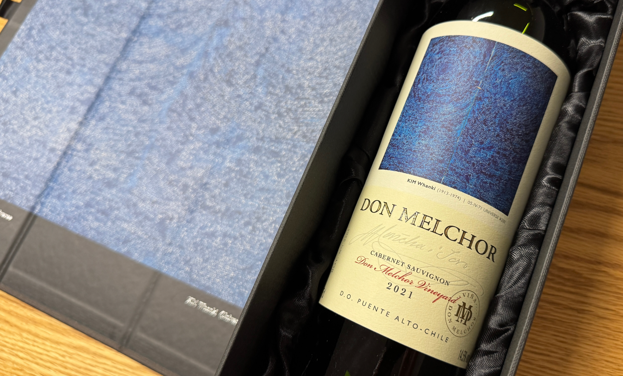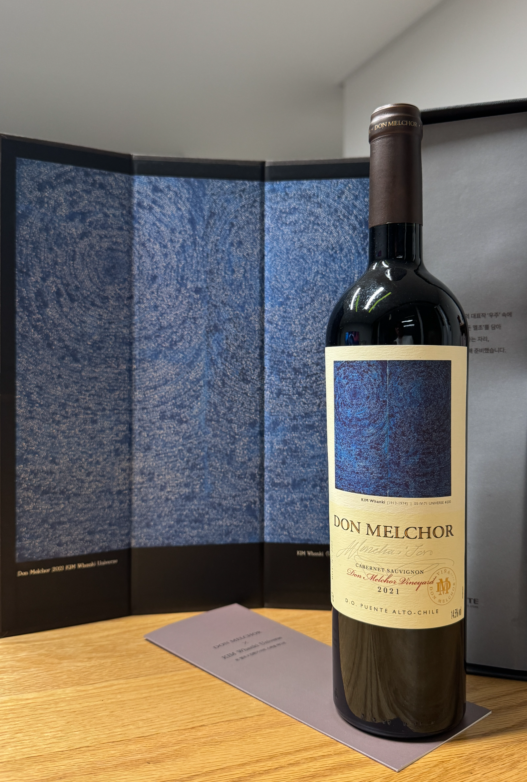 와인은 일반적인 돈 멜초 2021과 동일한 스펙이다. 같은 와인에 레이블과 박스 디자인만 변경한 거니까. 2021 빈티지는 <와인 스펙테이터(Wine Spectator)> 96점, <제임스 서클링(James Suckling)> 99점을 받았다. 그런데 김환기 아트 에디션을 준비하는 도중 <와인 스펙테이터> TOP 1에 선정됐다. 그해 WS 선정 최고의 와인이 된 것.