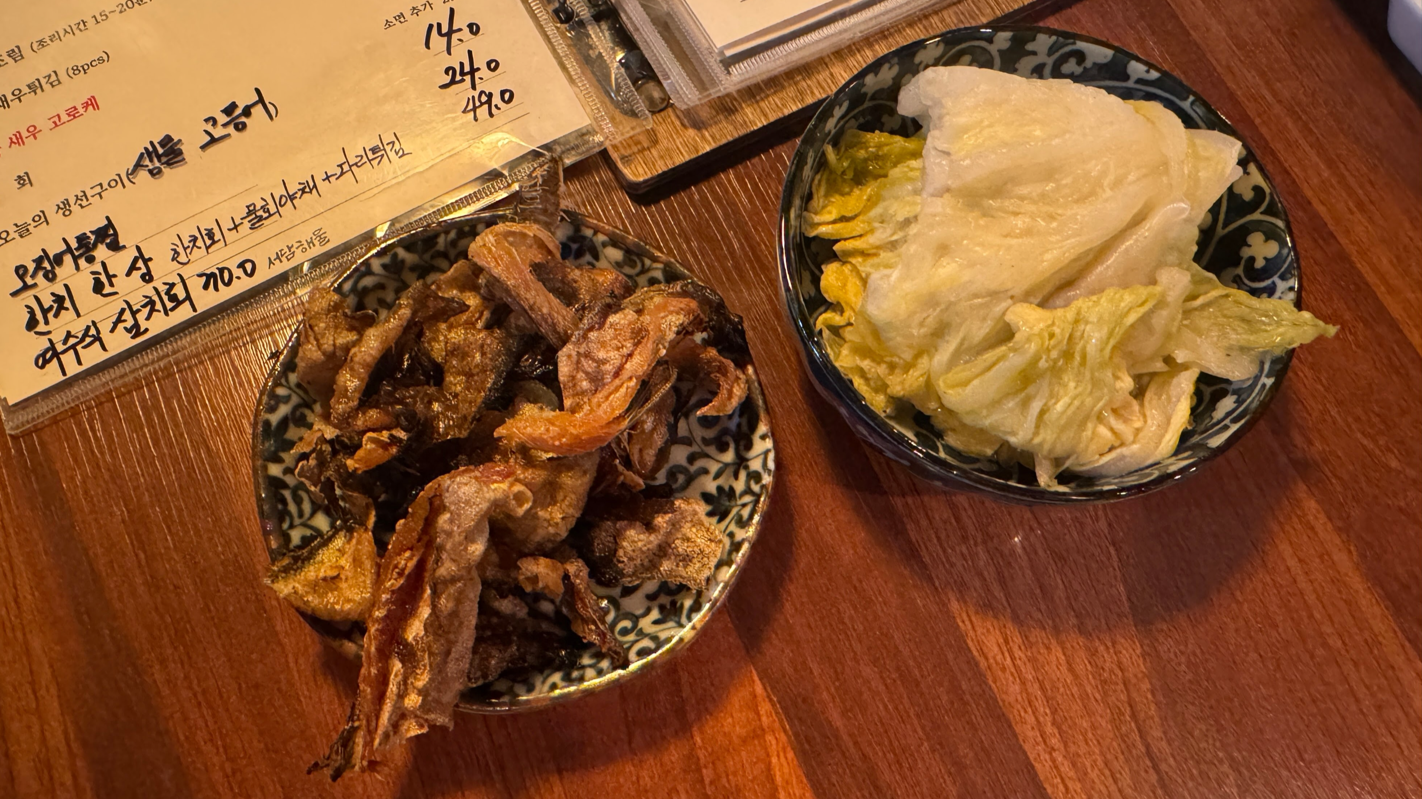 기본안주. 명태 껍데기 부각은 진짜 술도둑이다.