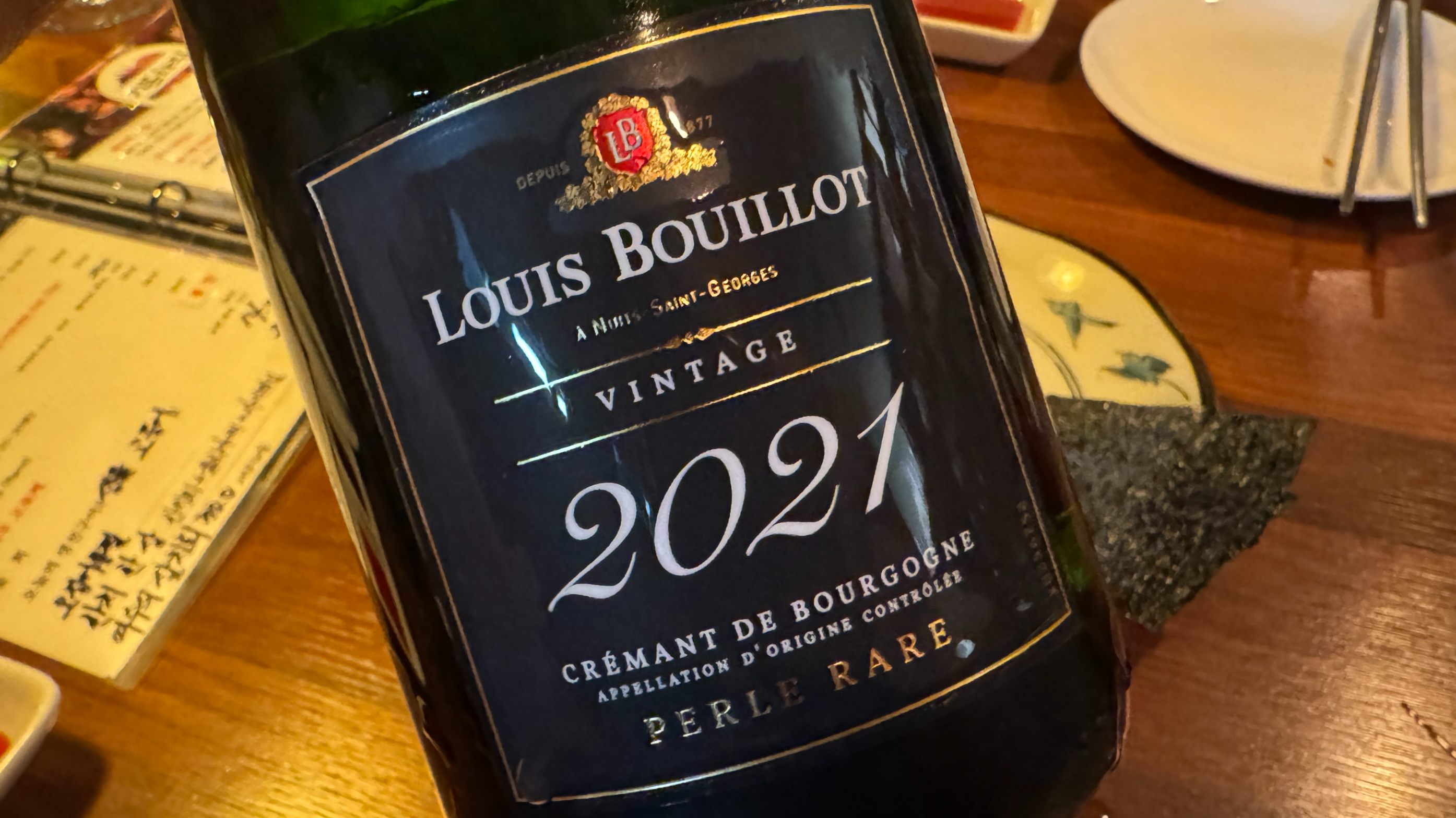 Louis Bouillot, Cremant de Bourgogne Perle Rare 2021. 적절한 산미, 깔끔한 미감, 은은한 토스티 뉘앙스에 밸런스가 아주 좋은 크레망. 엄청난 맛이나 품질은 아니지만 편안하게 술술 넘어가 금세 한 병을 다 비워 버렸다.