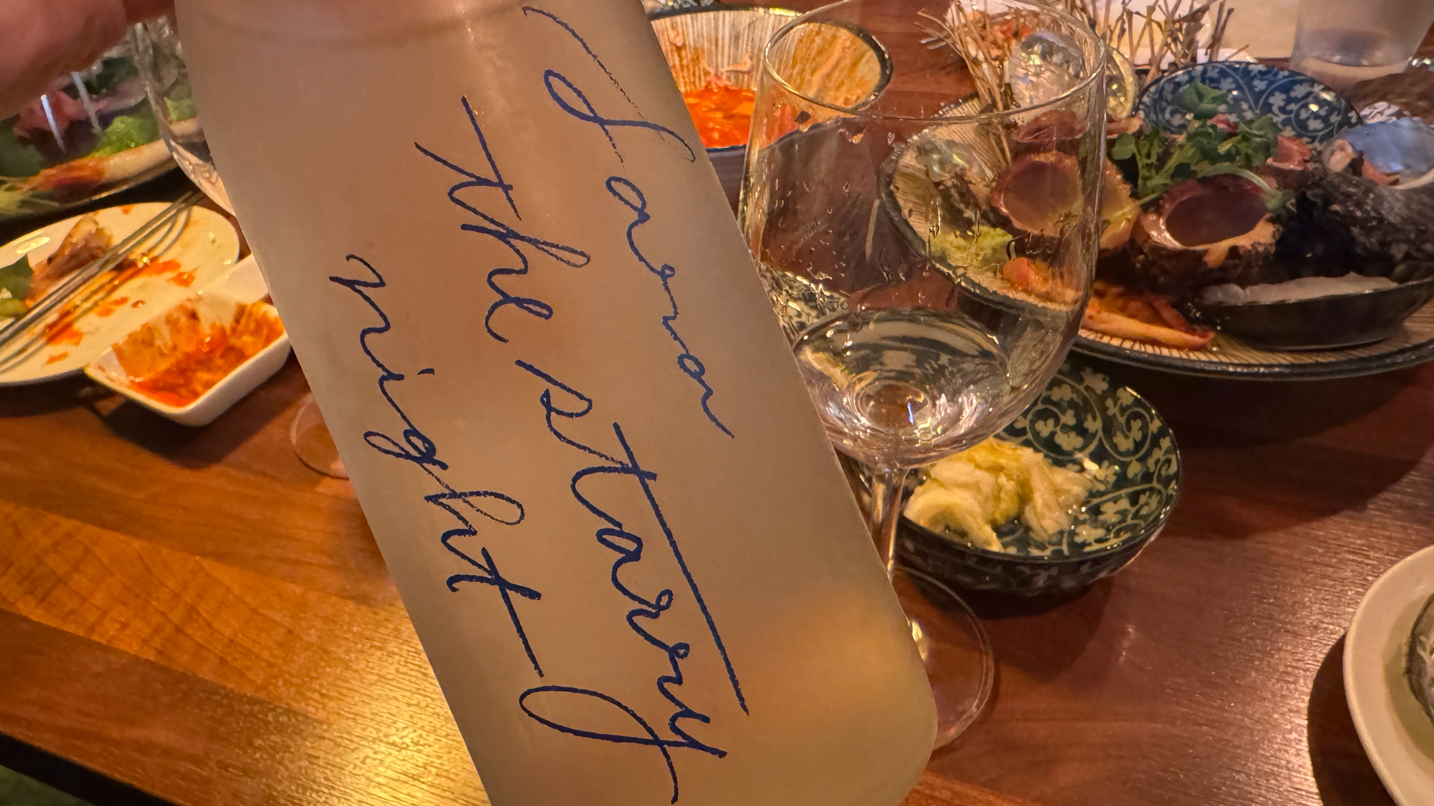 키타니시 슈조(北西酒造) Sara the starry night. 여름 한정 나마사케다. 보틀도 이뻐서 제법 기대를 많이 했는데, 청포도, 자두 같은 과일 풍미가 다소 과하게, 조금은 찝찌름하게 느껴진다. 지나치게 익어서 물러버린 과일 느낌이랄까.