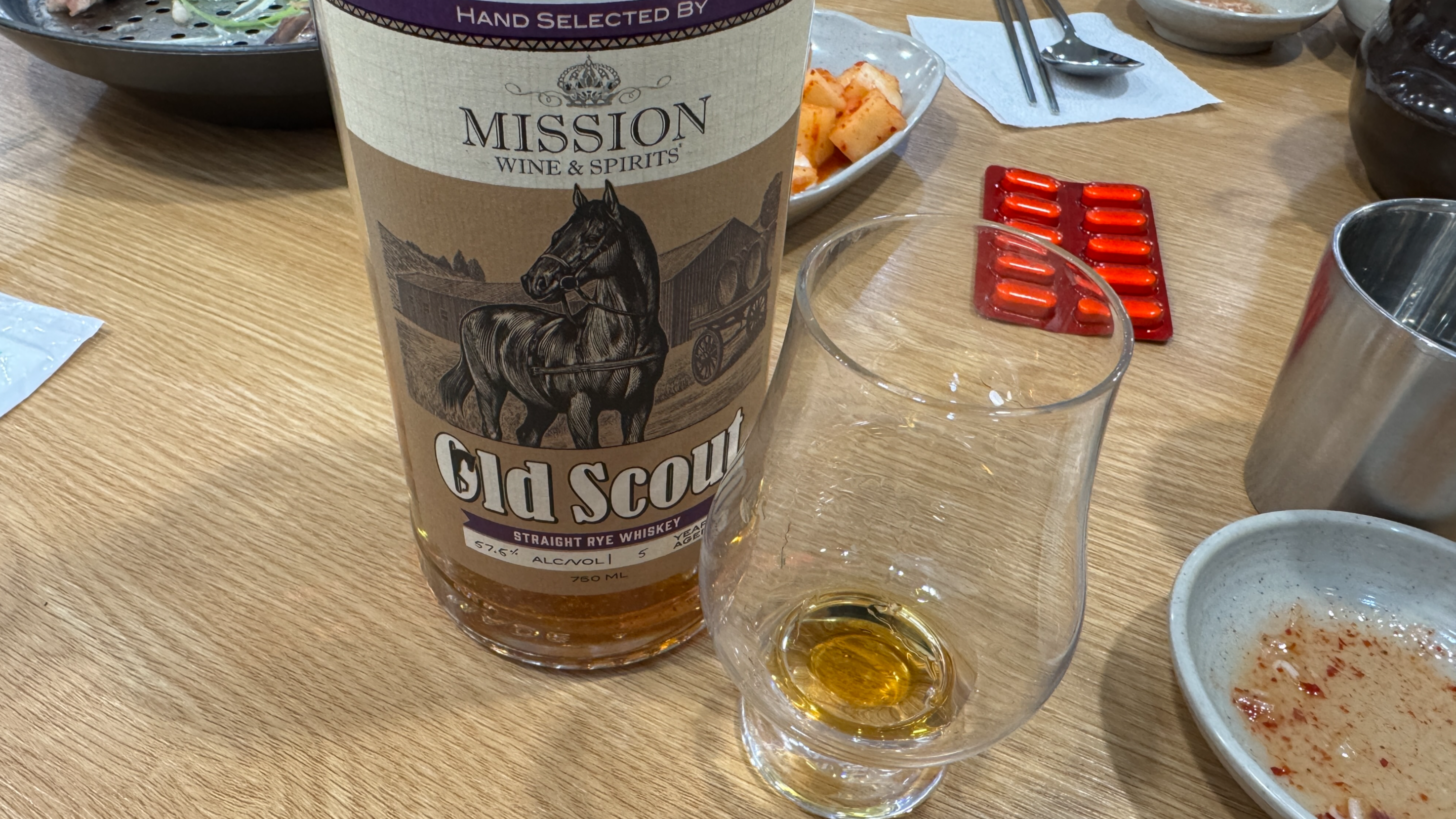 Mission Wine & Spiritsm Old Scout Straight Rye. 5년 숙성에 알코올 57.6%.