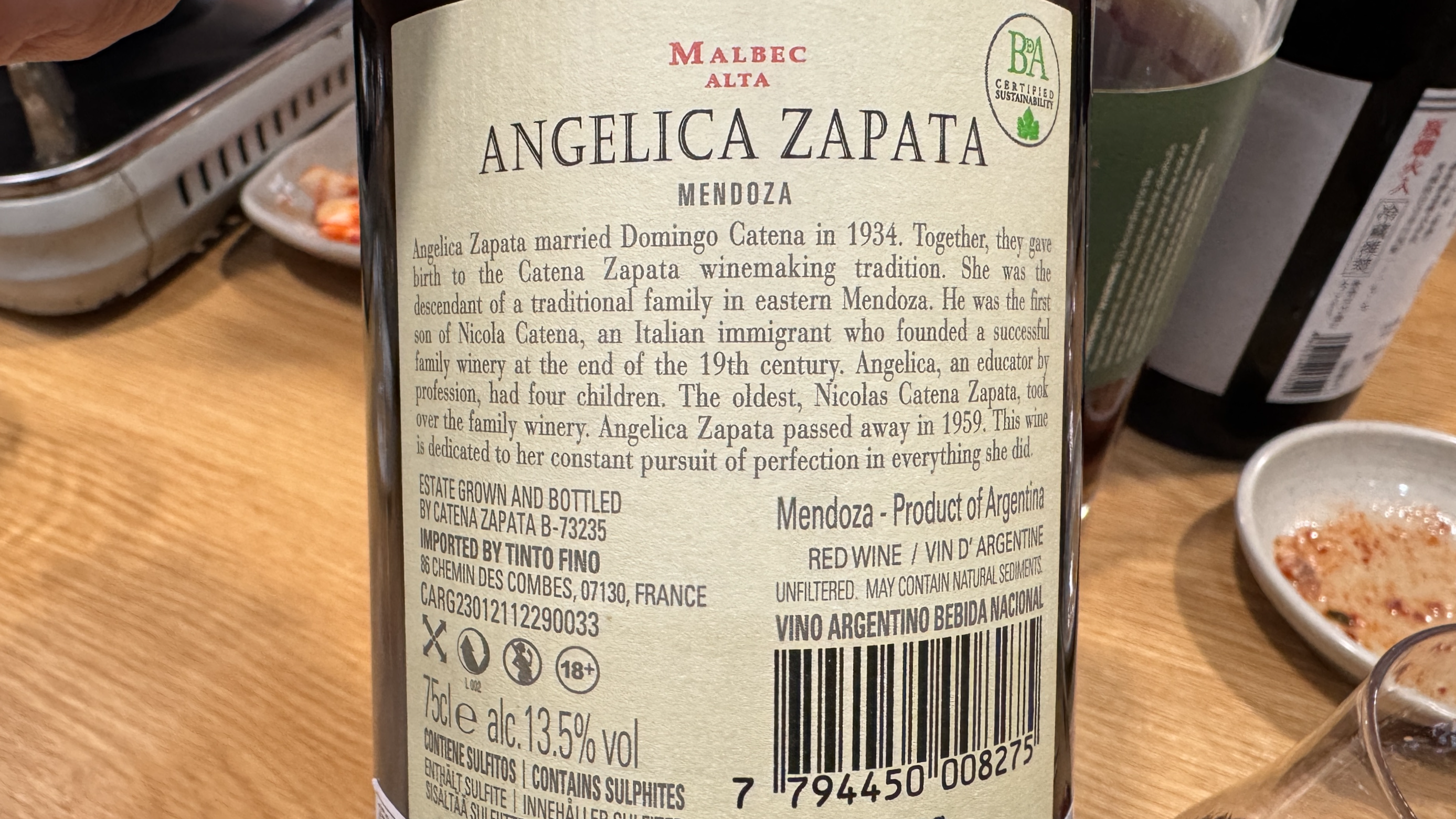 안젤리카 자파타는 카테나 자파타 와이너리를 일으킨 니콜라스 카테나 자파타의 어머니 이름이다.