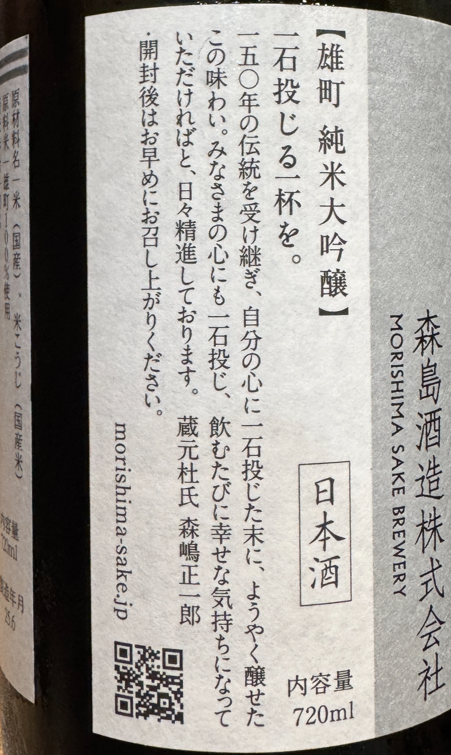 모리시마 오마치 준마이다이긴조 모던 클래식(森嶋 雄町 純米大吟釀 Modern Classic).