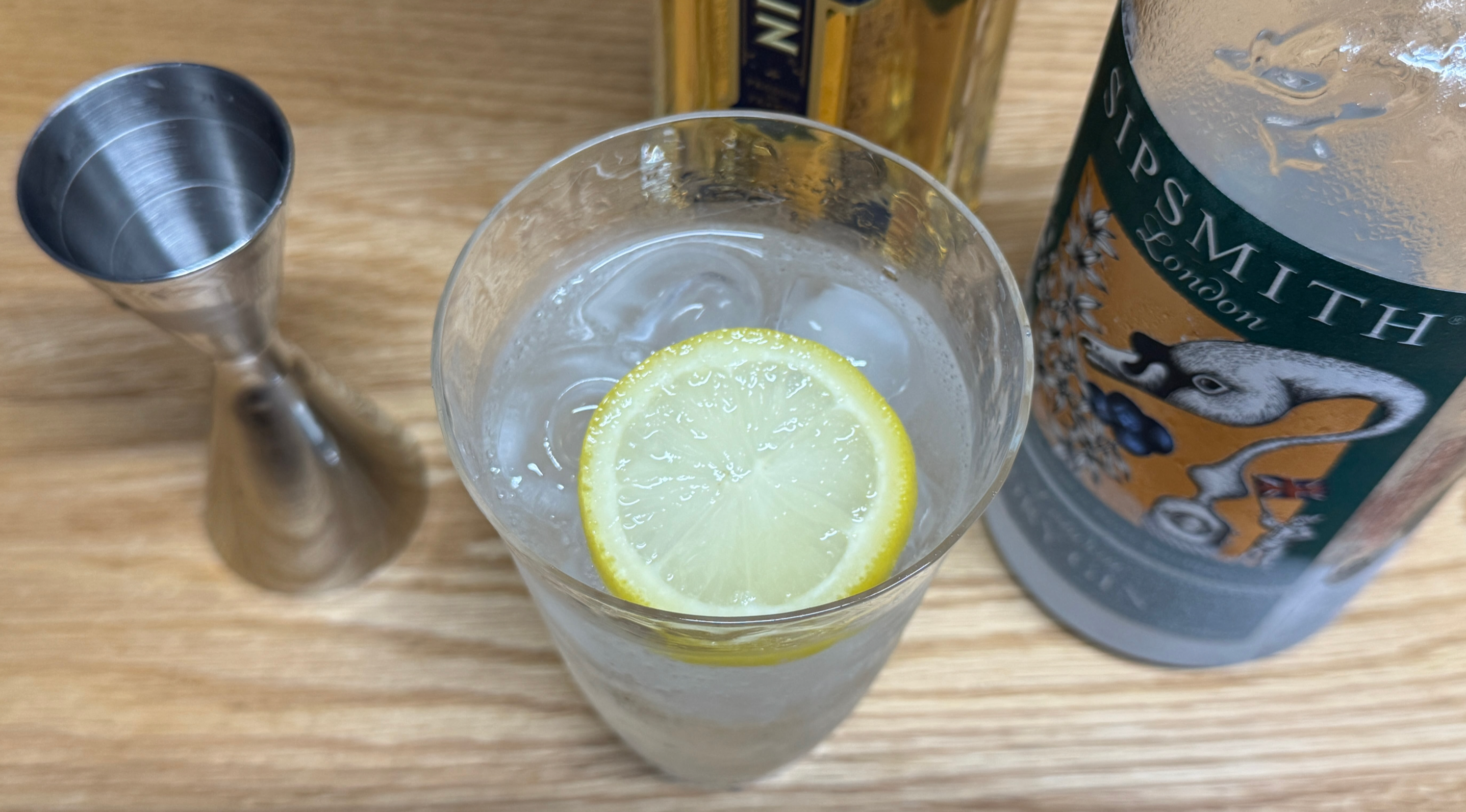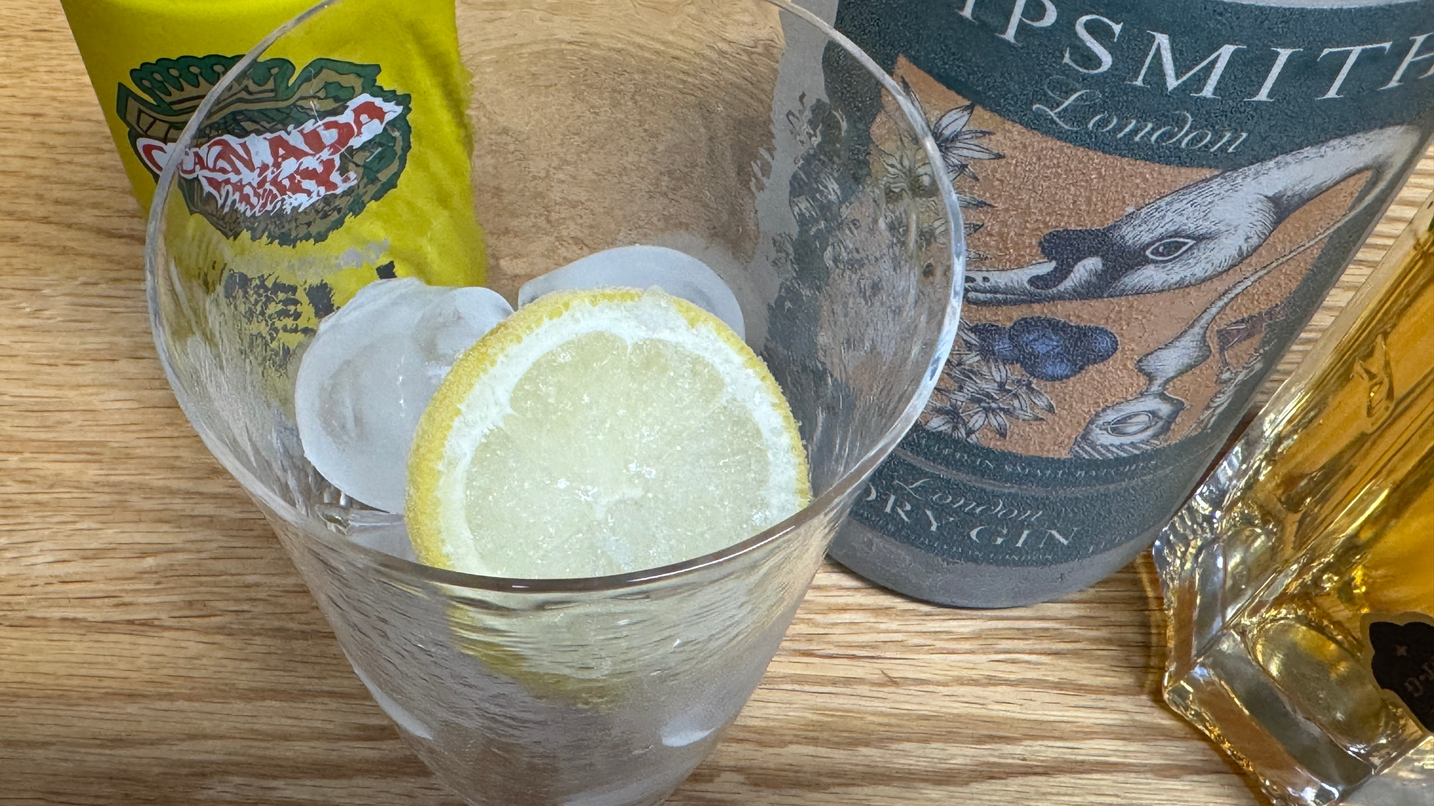레시피의 가니시는 라임 웨지이고, 개인적으로도 진토닉에는 라임을 선호하지만 가진 게 레몬 슬라이스밖에 없어서... 그래도 가니시가 없는 것보다는 있는 게 훨씬 나으니까. 그리고 생 제르맹은 레몬과 궁합이 제법 좋은 것 같으니까.
