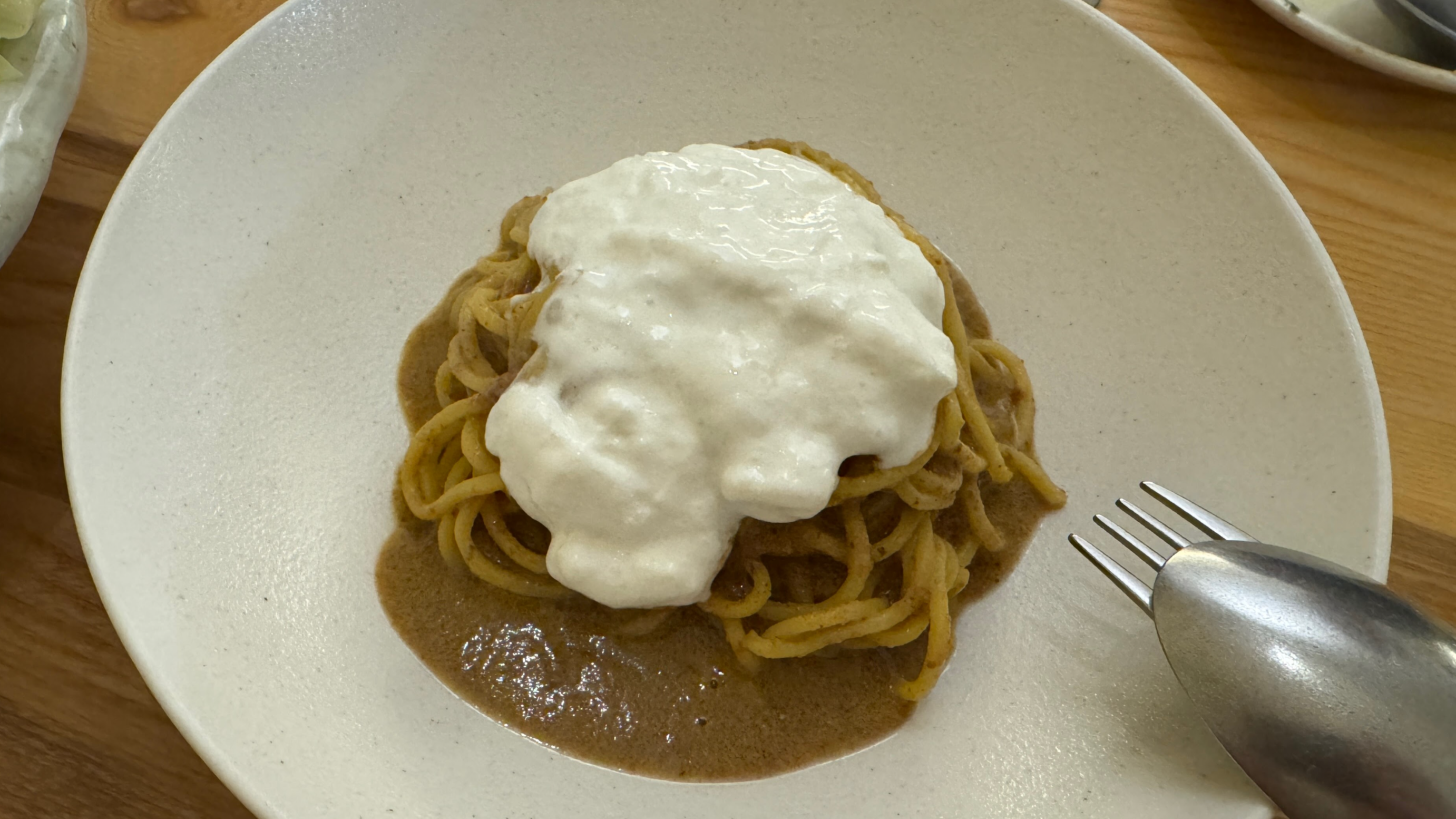 피스타치오 스트라차텔라 스파게티. 고소한 맛이 일품인, 다른 곳에서 쉽게 맛볼 수 없는 스타일이다.