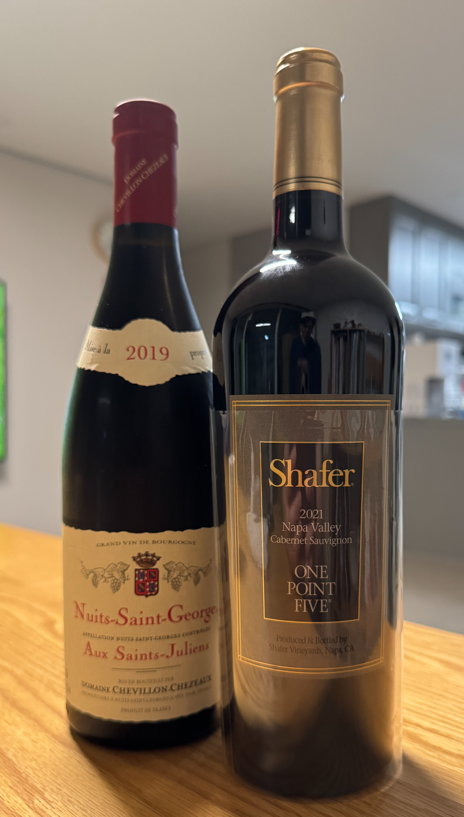 오늘의 메인, Shafer, One Point Five Napa Valley Cabernet Sauvignon 2021. 블랙커런트, 블랙체리 풍미가 플로럴 허브, 민트, 은은한 토스티 오크 풍미와 함께 밀도 높게 드러난다. 입에서는 실키한 타닌, 균형을 이루는 산미, 다크 초콜릿 힌트가 진한 과일 풍미와 함께 조화를 이룬다. 과하지 않은 밸런스와 구조감을 갖춘, 향을 맡고 입에 넣는 순간 나파 밸리 카베르네 소비뇽이라는 느낌이 빡 오는 와인이다. 편하게 마셨음에도 그 품격을 느낄 수 있었달까.