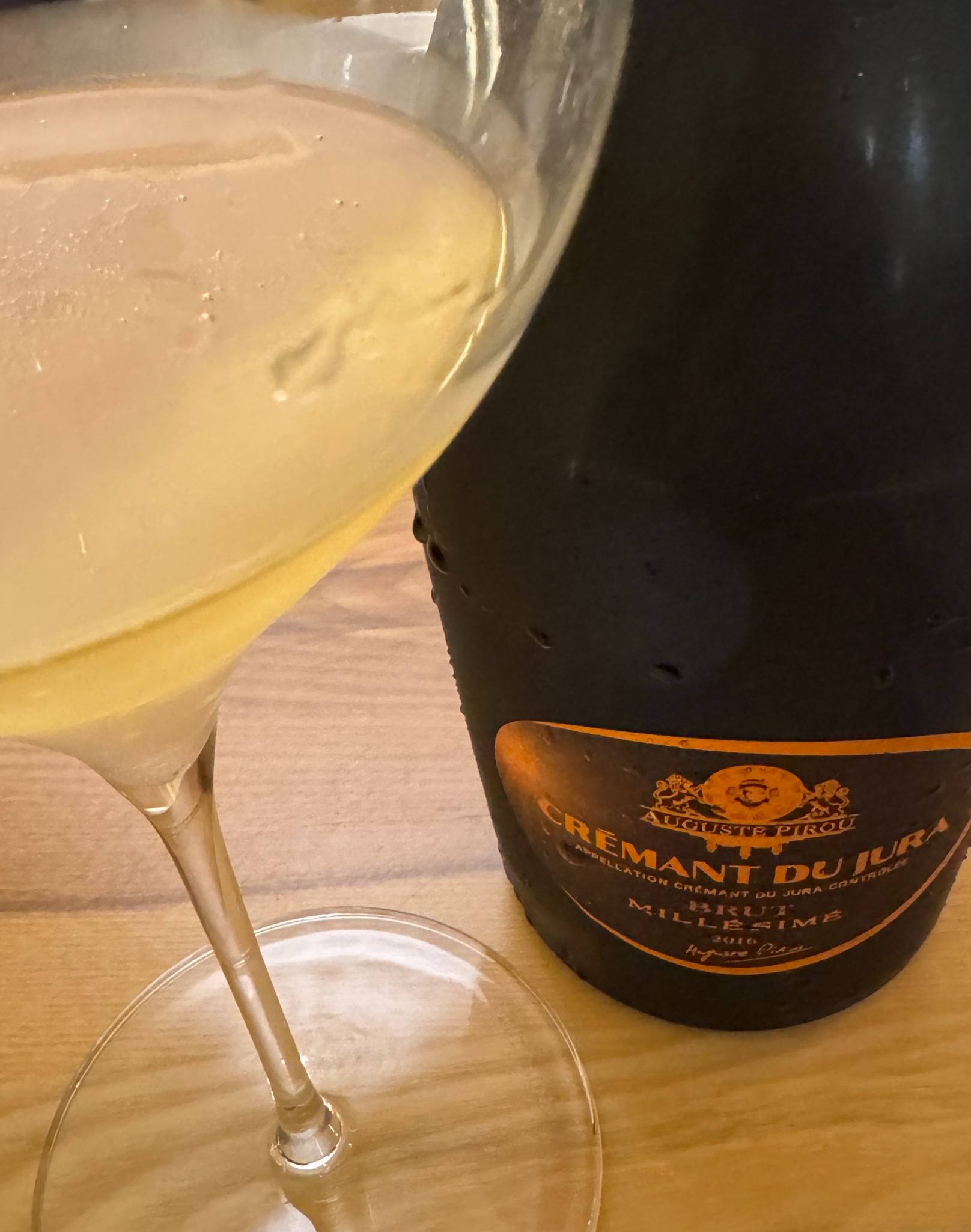 Auguste Pirou, Cremant du Jura Brut Millesime 2016. 처음 보는 생산자의 크레망인데 스타일은 딱 내 취향이었다. 힘찬 버블을 타고 올라오는 잘 익은 핵과의 달콤한 풍미에 곁들여지는 꿀 뉘앙스와 구운 빵 힌트. 풍성한 향을 화려하게 피워내는 보울이 넓은 잔을 받은 게 신의 한 수였던 것 같다.
