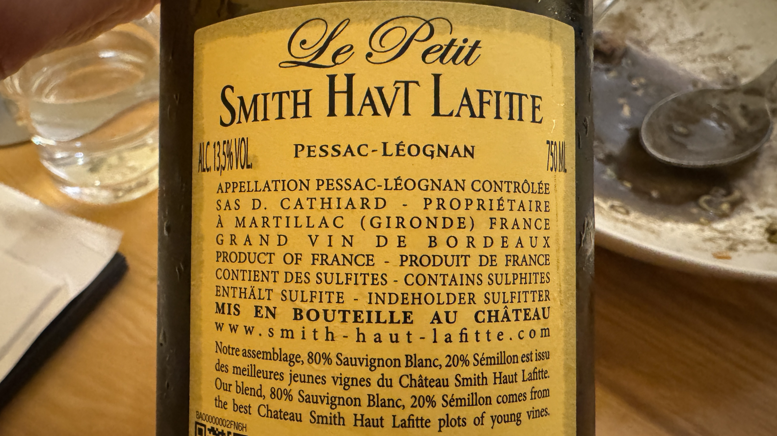 두 번째 화이트는 Le Petit Smith Haut Lafitte Blanc 2021. 밝은 과일 풍미와 바닐라 오크가 온화한 밸런스를 이룬다. 드라이한 미감에 정제된 산미, 부드럽고 풍만한 미감, 시간이 지나며 천천히 변화하는 풍미. 도그 포인트와는 확연히 대비되는 스타일인데 조금 더 느긋하게 즐겼으면 좋았을 것 같다.