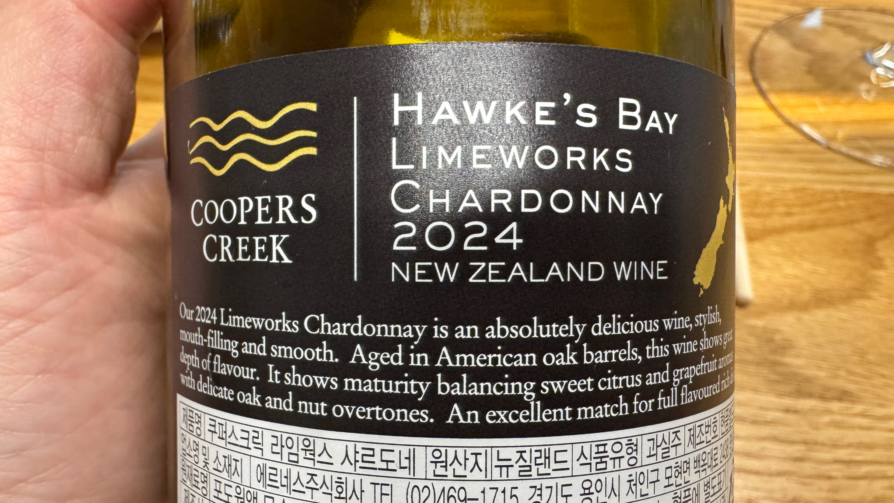 시작은 Coopers Creek, Limeworks Chardonnay 2024. 뉴질랜드 혹스 베이(Hawkes Bay)의 샤르도네다.