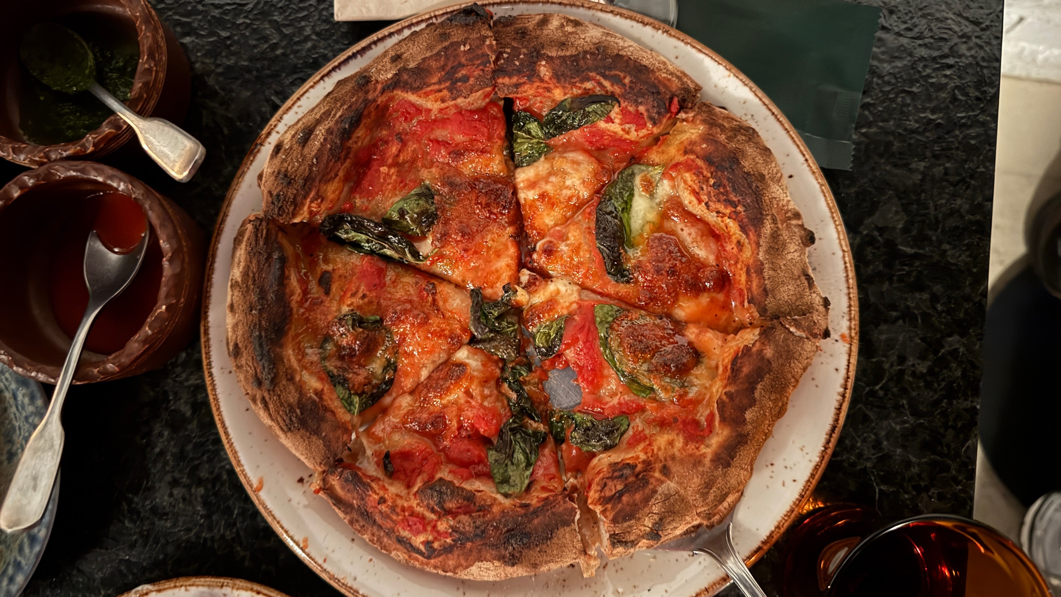 마르가리타 피자. 여기 화덕 피자는 아닌데 도우가 쫄깃하면서도 바삭한 맛이 있다. 화덕 피자와 오븐 피자의 장점을 겸비한 느낌.