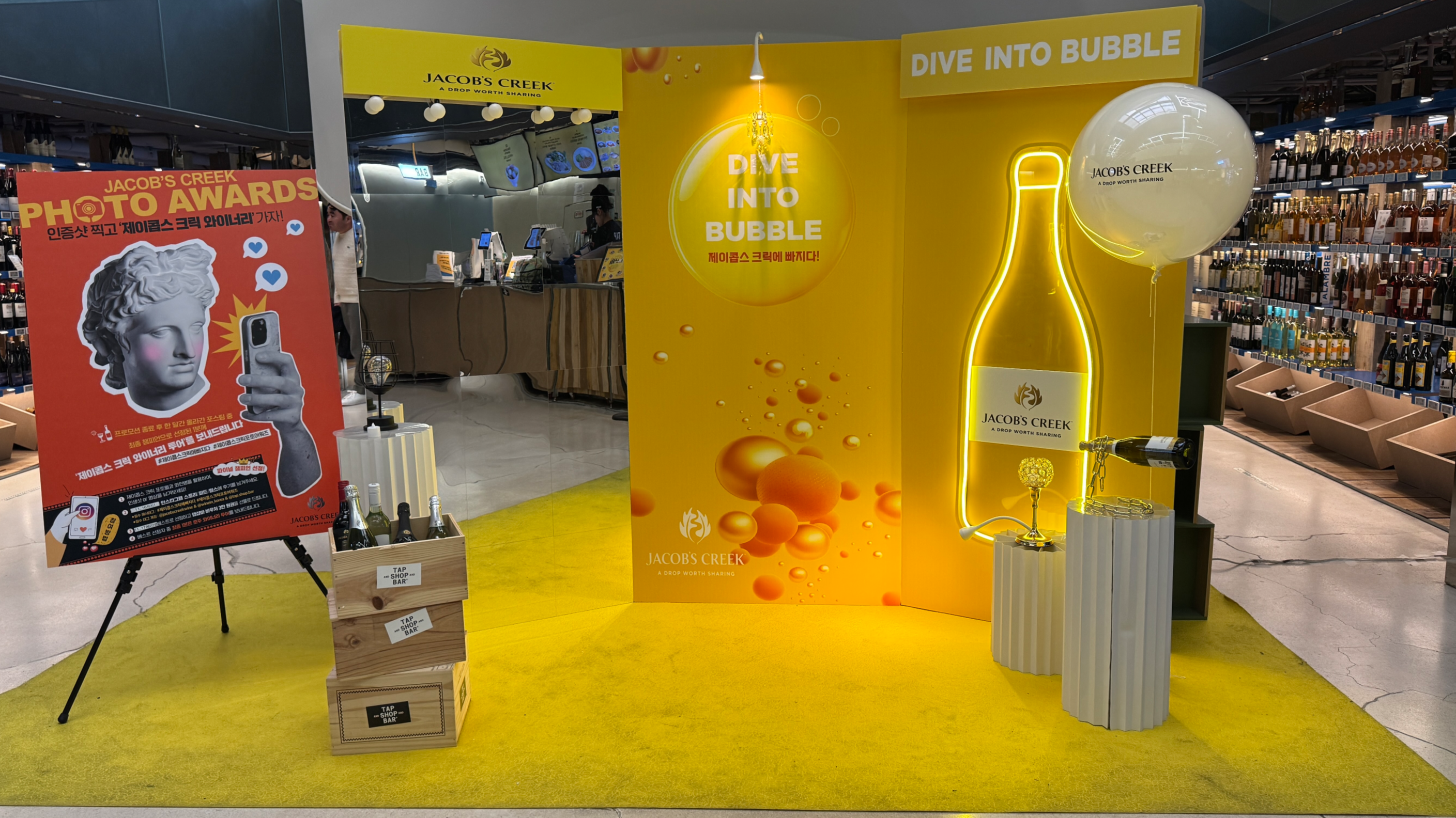 한쪽에서는 Jacob's Creek 이벤트 부스가 차려져 있었다. 노랑노랑한 것이 커엽네...