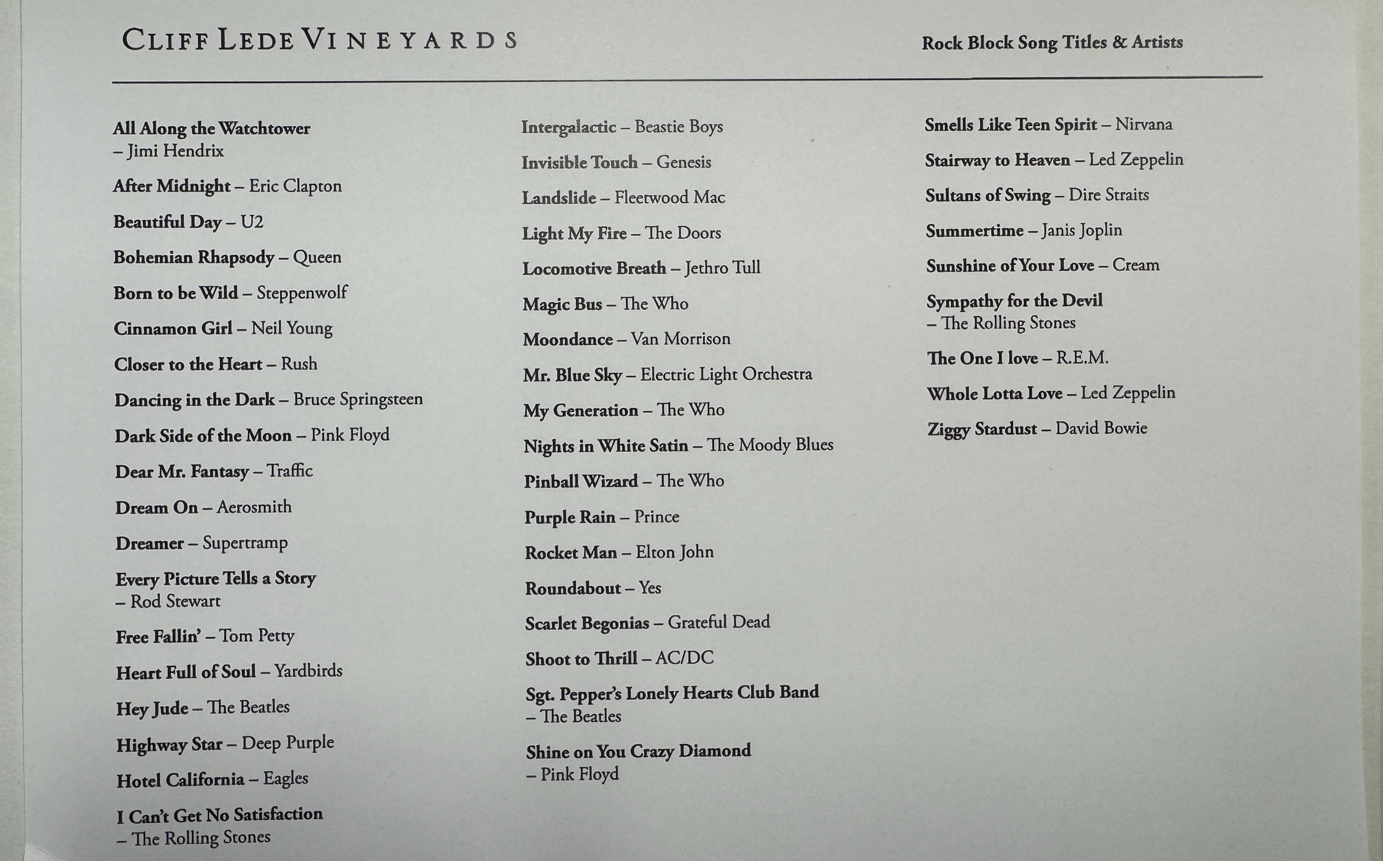 Born to be Wild, Whole Lotta Love, Sgt. Pepper's Lonely Hearts Club Band.... 몇 곡 빼고 다 아는 노래다.