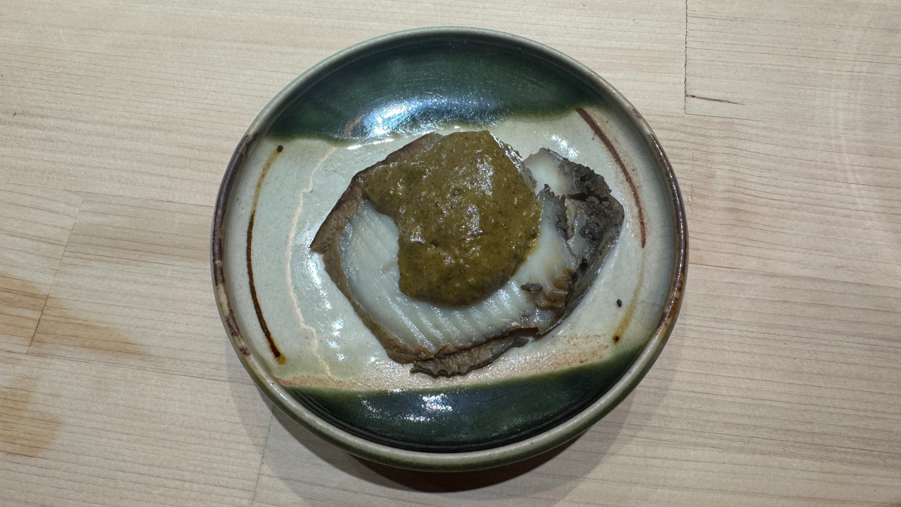 녹진한 내장 소스를 곁들인 전복.