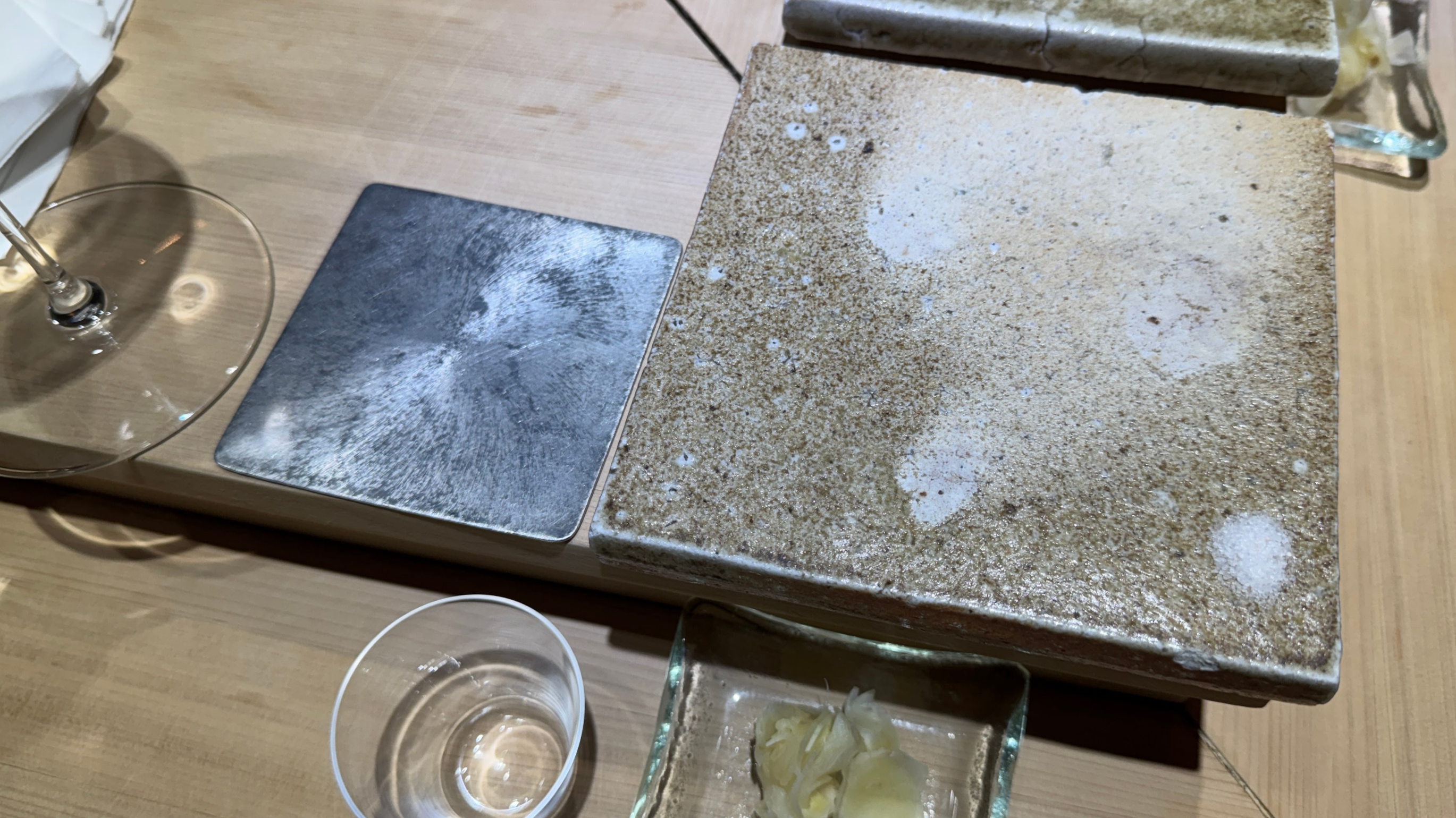 스시를 받을 접시와 철제 코스터.