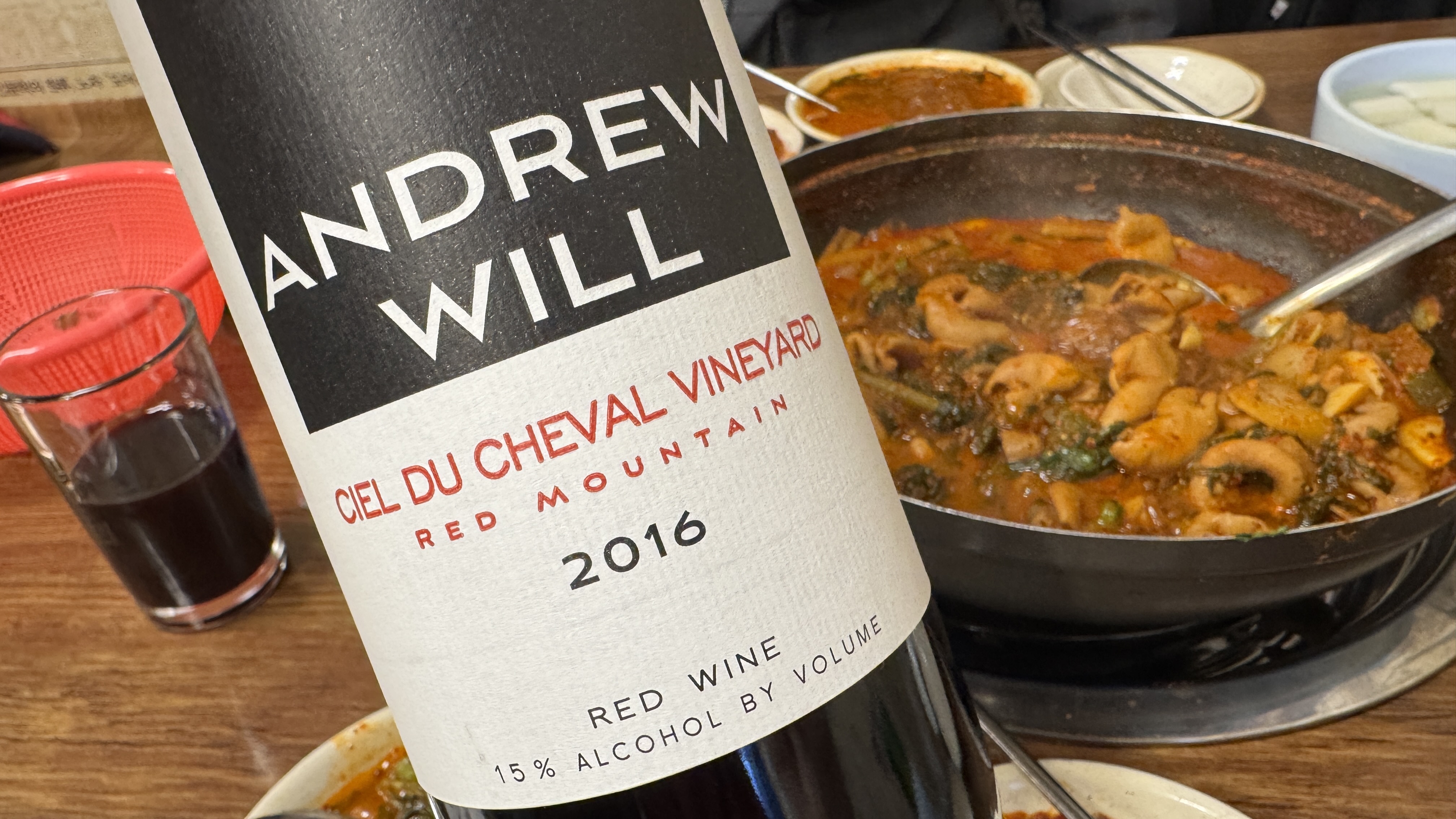 친구가 혹시 몰라 한 병 준비해 온 와인. Andrew Will, Ciel du Cheval Vineyard Red Mountain 2016.